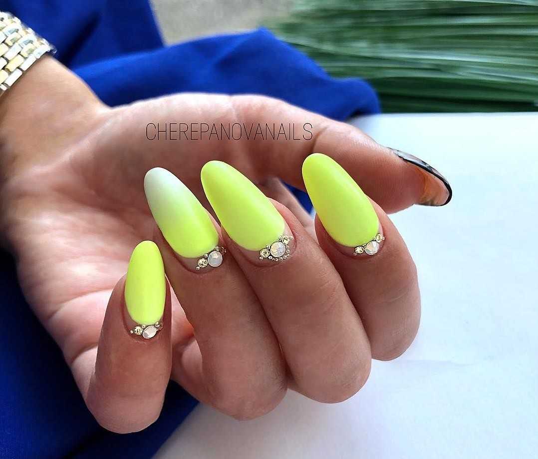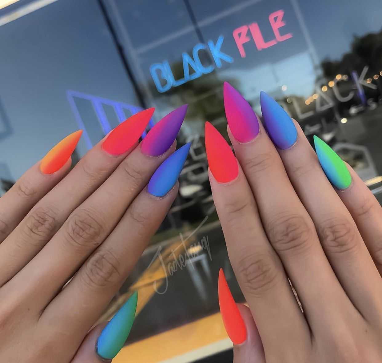 Неоновые цвета на длинных ногтях