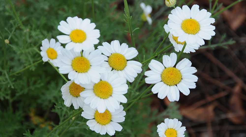 - Пиретрум щитковый. Многолетник родом из Восточной Европы. Прямостоячие стебли достигают метра, а прикорневые листочки – 40 сантиметров. Количество цветков – до двадцати, соцветия сформированы в виде щитков.