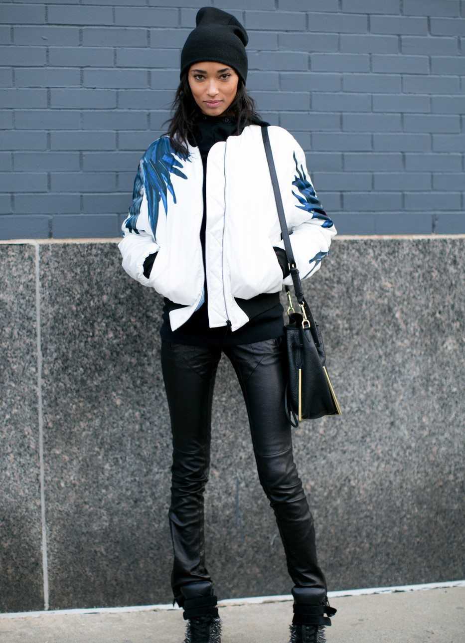 Довольно распространенное сочетание кожаной куртки и ушанки. Чтобы соответствовать духу времени, рекомендуется присмотреться к ушанкам с комбинацией кожи и меха. Также допустимо сочетание кожаной куртки и шапки-носка.