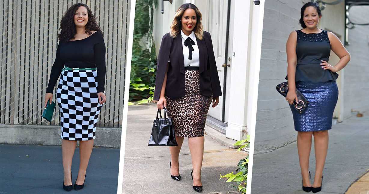 Полным дамам стоит отказаться от чересчур облегающих вещей, включая юбки и кофты. Лучше выбрать не очень приталенную модель, которая скроет излишнюю полноту. А также не надо выбирать те модели, что пошиты из блестящих тканей, так как они визуально прибавляют объем и без того крупным бедрам.