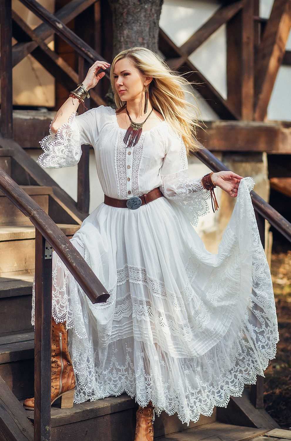 - Этномотивы. В дизайне таких юбок используют крупное кружево, связанное крючком. Одежда может быть полностью выполнена из полупрозрачного материала или иметь горизонтальные вставки по подолу.