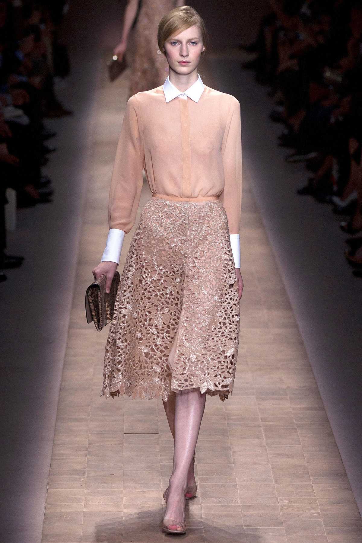 Бежевый цвет, претендующий на лидирующие позиции в 2021 году, придаст кружевной юбке европейской элегантности. В сочетании с блузой или топом пастельных тонов получится нежный изящный образ, а с темным, черным или коричневым верхом, более деловой и официальный.