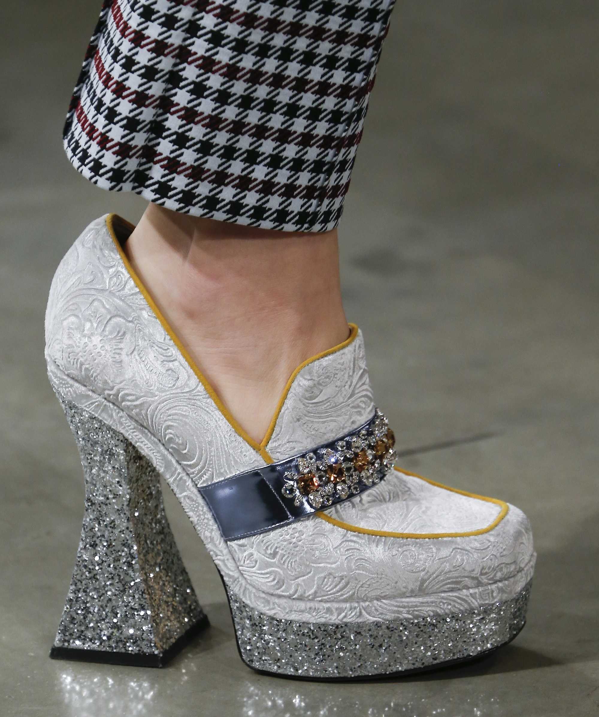 - Miu Miu. Сочетание несочетаемого – например, ремешок и круглый мысок. Авангардные балетки, гламурные сникеры или слиперы, полусапожки.