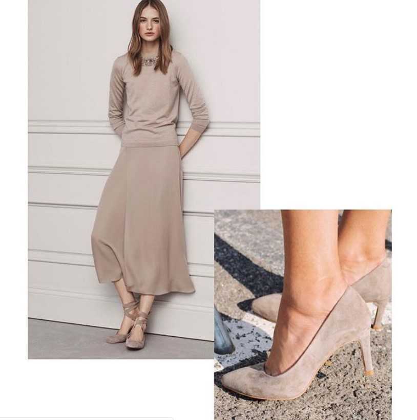 Универсальность. Бежевые лодочки можно будет надеть к ансамблям разных стилей. Единственное исключение – спортивная одежда.