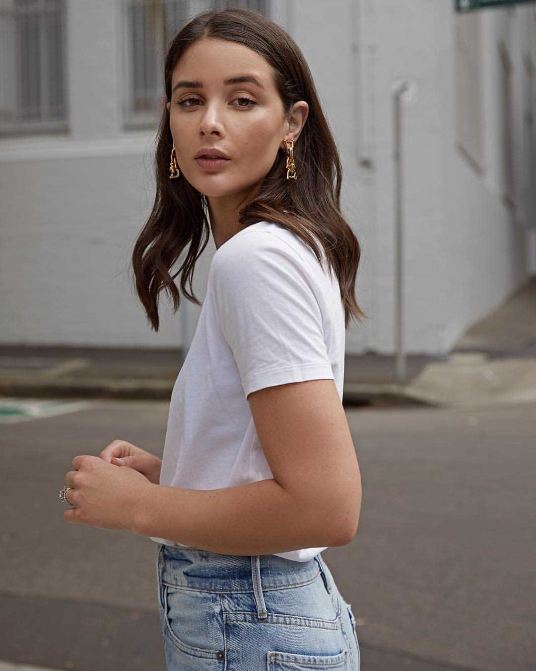 Классический прием, который должен стать интуитивным — если вы надеваете простой топ, футболку или рубашку, то выбирайте к ним в компанию акцентные серьги. Photo: harperandharley.com