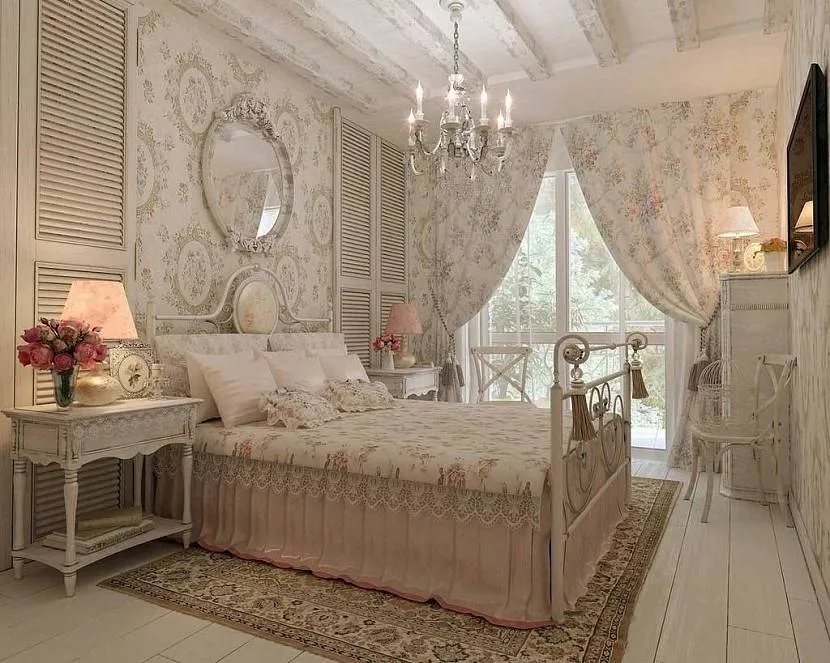 Обязательно повесьте на стены бра, а на потолок – хрустальные люстры. Разложите на диване или кровати светлые декоративные кружевные подушки – и ваша комната приобретет завершенный вид.