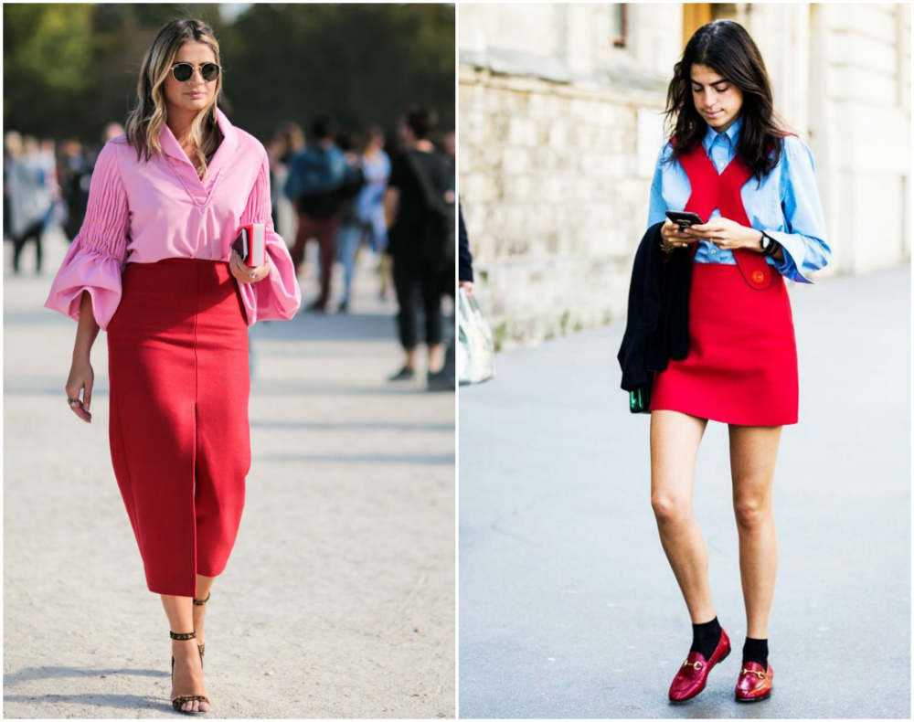 С осторожностью стоит подходить к сочетанию синего и красного. Эти цвета неплохо гармонируют друг с другом, но красная блуза с ярко-синим брючным костюмом или красное пальто с синим платьем – это слишком «кричащий» комплект