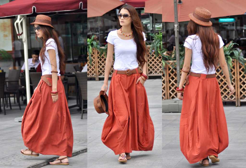 Огромной популярностью пользуются льняные юбки. Натуральный материал, этнические нотки, отделка кружевом — такой наряд выглядит стильно и дорого. Также хлопок, лен часто декорируются вышивкой или бисером. Эти элементы превосходно смотрятся на тканях оливкового, бежевого, серо-голубого и молочного оттенков.