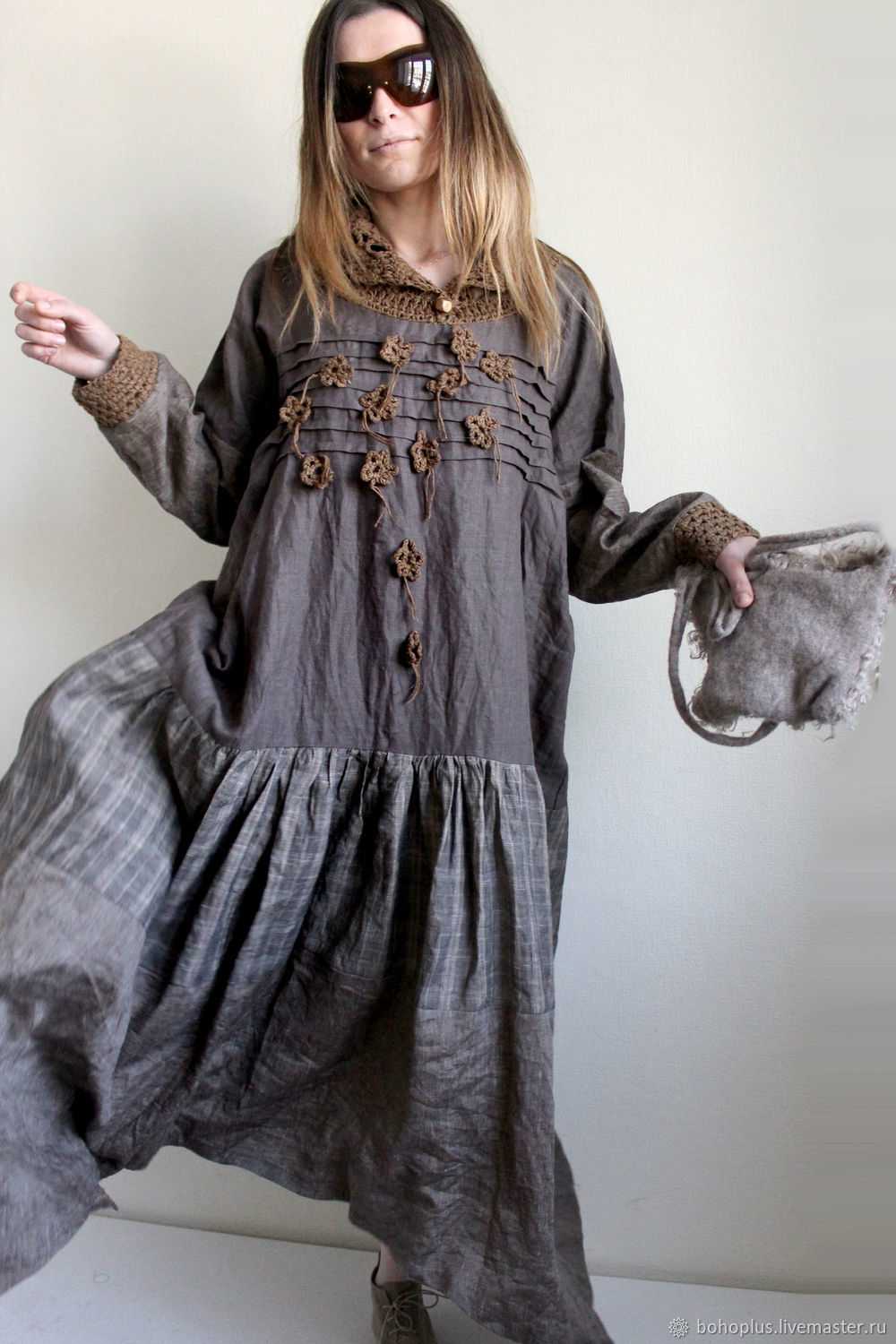Платья в этническом стиле великолепно выглядят в льняном исполнении. Этот материал пропитан самобытной простотой и красиво выглядит в сочетании с вязаным кружевом. Стиль бохо и гранж – бунтарские направления в мире моды. Девушки, предпочитающие эти стили, выбирают наряды свободного кроя с обилием броских аксессуаров и украшений. Кружево, декор деревянными пуговицами или бусинами, распущенные волосы и обувь с длинными шнурками, обхватывающими икры – все это должно присутствовать в образе в стиле бохо.