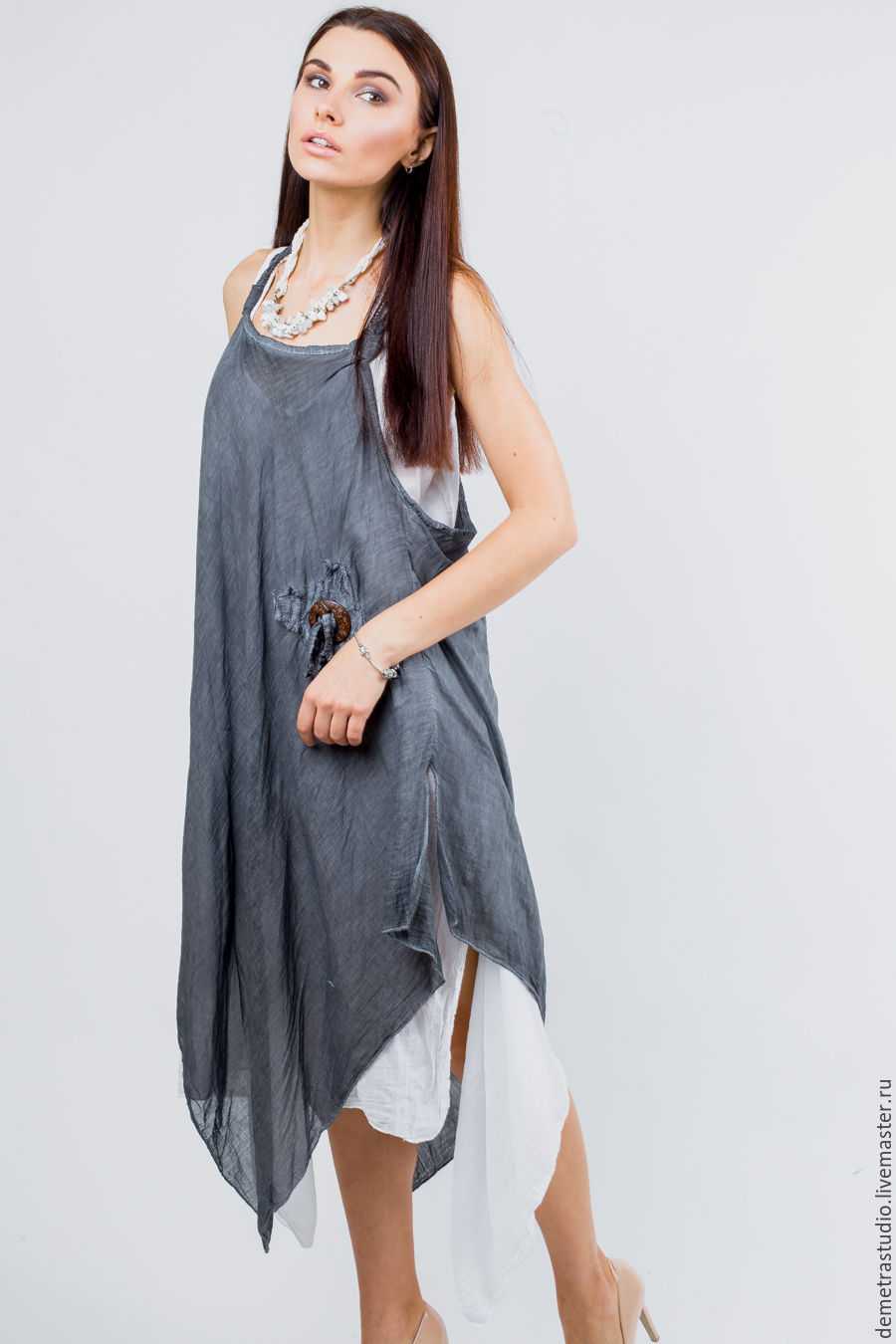 Сезон весна-летообозначен актуальностью платьев-туник Они изготавливаются в основном из прозрачных тканей типа льна, шелка и хлопка Длина изделия достигает середины бедра