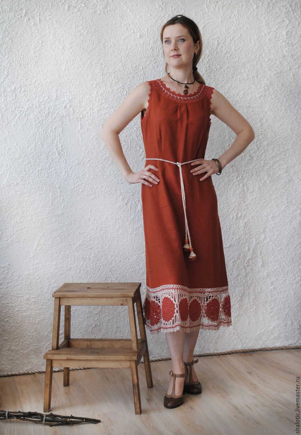 Льняное платье будет выглядеть более эффектно и стильно в окружении подходящих аксессуаров. Беспроигрышный вариант – это воплощение в образе этнического стиля.