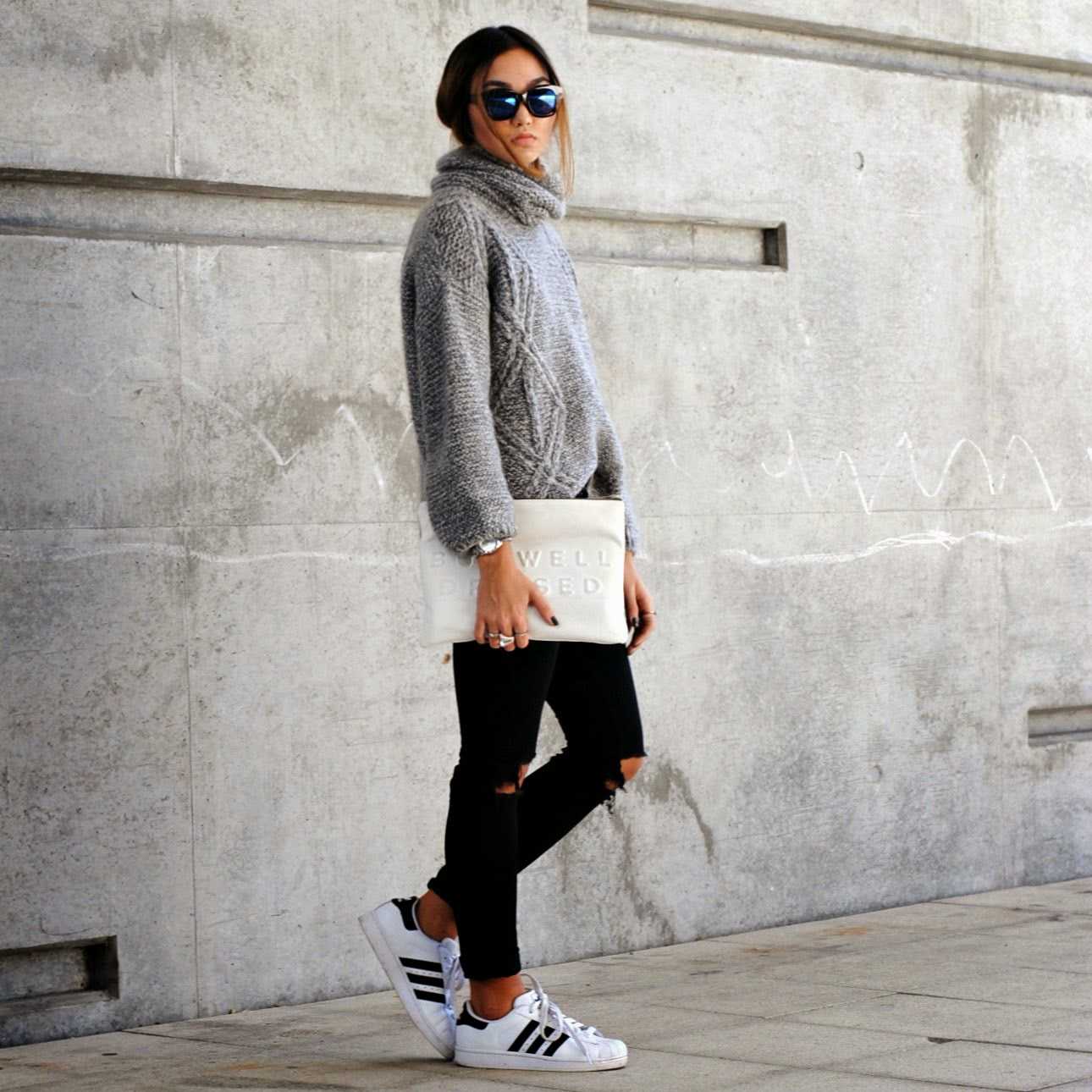 В холодные дни выбирайте модную толстовку или свитер, которые отлично дополнят любой наряд с джинсовыми брюками.