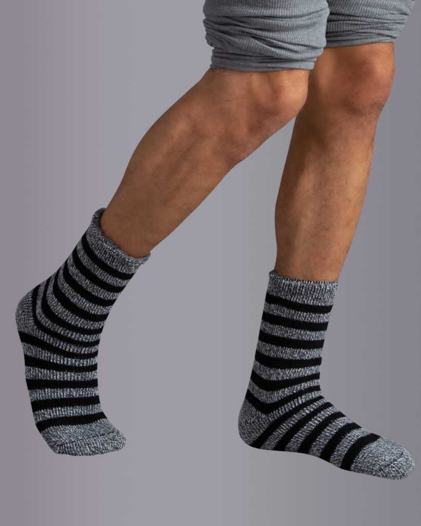 - В состав входит знаменитая шерсть мериноса. Термоноски отличаются износостойкостью и хорошей циркуляцией воздуха благодаря трехслойной махровой вязке. Изделия плотно облегают ногу за счет эластичного бандажа стопы и голеностопа.