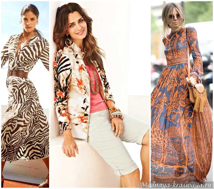 Большую популярность не только в одежде стиля сафари, но и других стилях набирают анималистические и растительные принты.