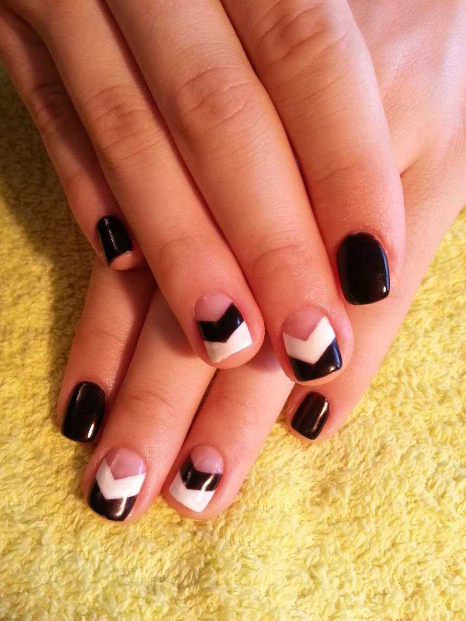 Варианты черно-белого френча с узором на короткие и длинные ногти