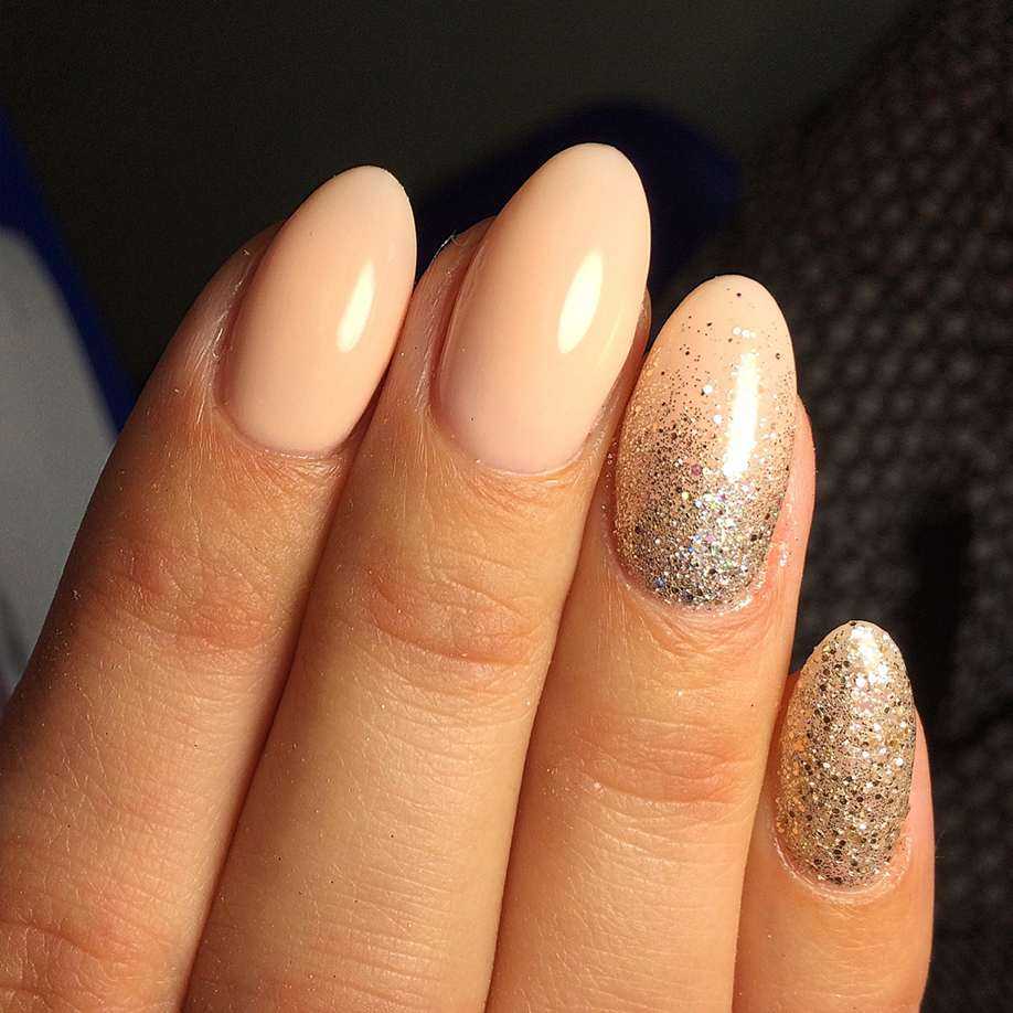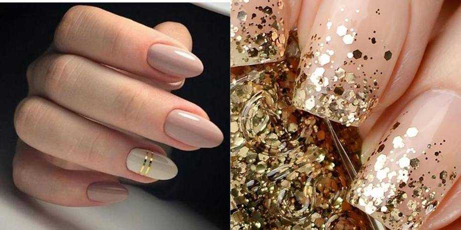 Одним из основных достоинств нюдового нейл-арта является его способность гармонично сочетаться практически с любыми современными материалами, техниками и дизайнами. Украсить праздничный нюдовый маникюр можно блестками, стразами, втиркой, полосками фольги и хрустальной крошкой.