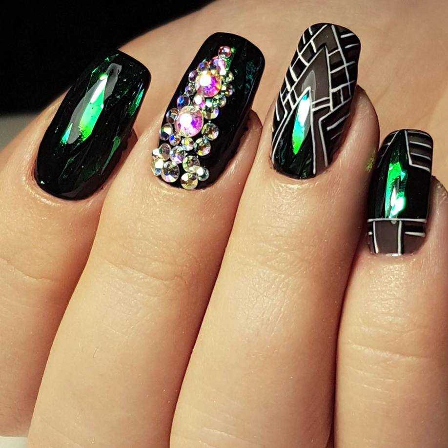 Далее мы продемонстрируем несколько фото маникюра со стразами, выполненного в разных техниках и стилях.