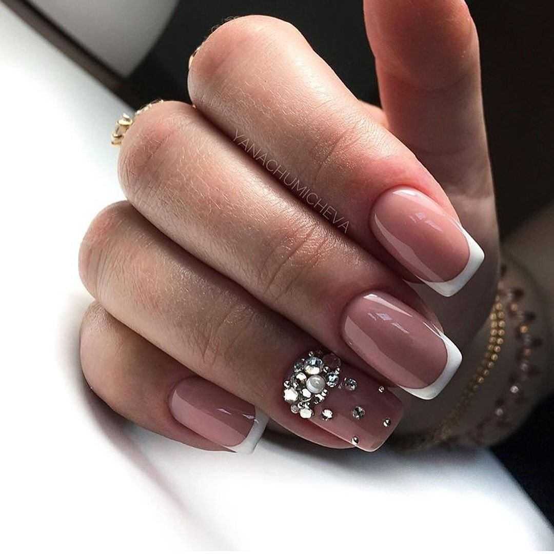Элегантный нюд не теряет своей актуальности. С помощью страз можно придать ей блеск.