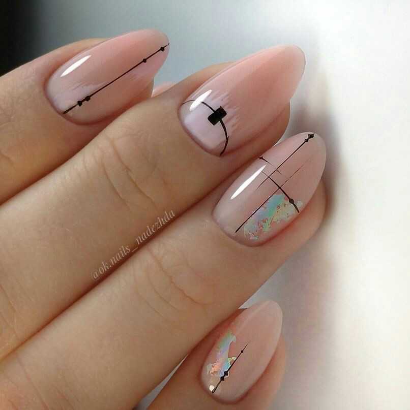 Вы можете сочетать нюдовый маникюр с геометрическими фигурами, рисунками и блестками на коротких ногтях. Этот вариант делает маникюр более интересным и привлекательным.