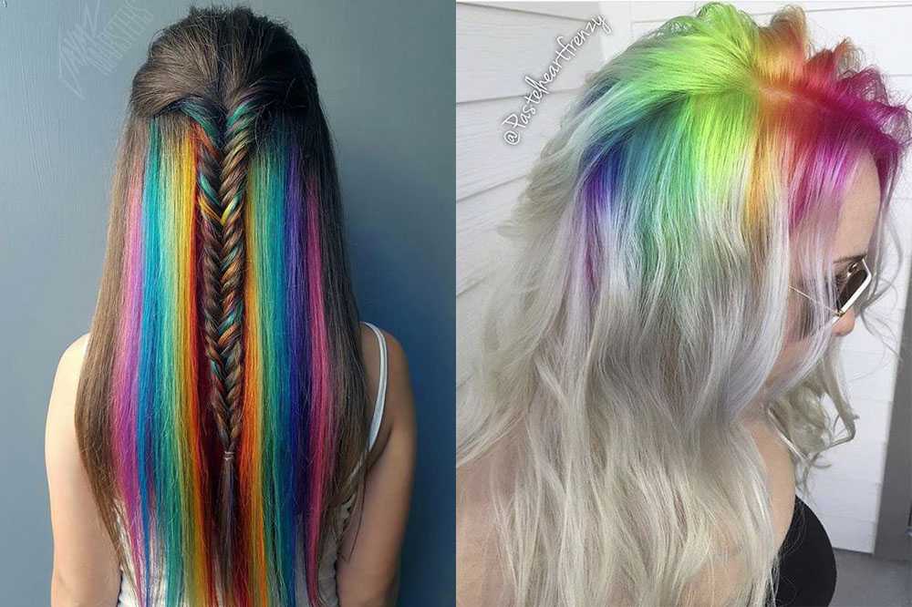 Пастелью можно покрасить только кончики или целую прядь от корней. Интересно смотрятся разноцветные косы и завитые локоны. Здесь огромный простор для экспериментов.