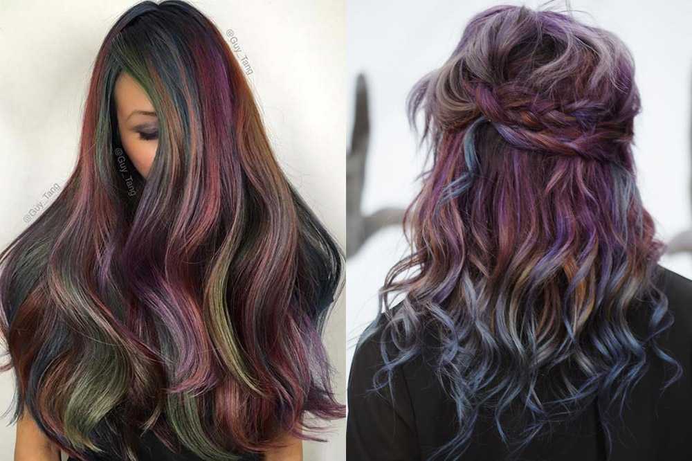 Брюнеткам и темно-русым женщинам тоже есть из чего выбрать. На темных волосах неплохо смотрятся голубые, красные, серые акценты. Можно использовать сразу несколько цветов родных оттенков и при их смешивании создавать красиво перетекающие волны.