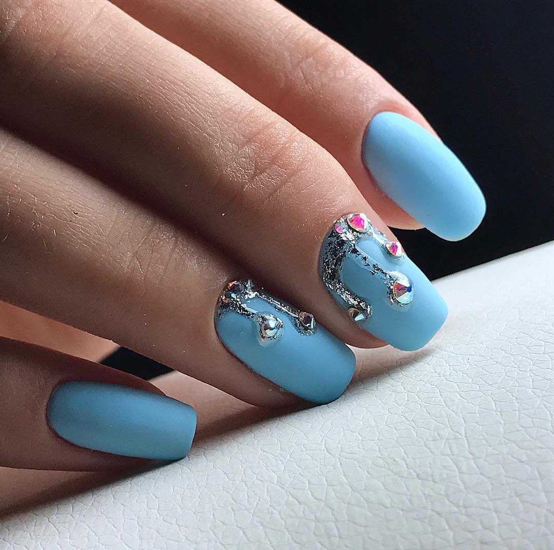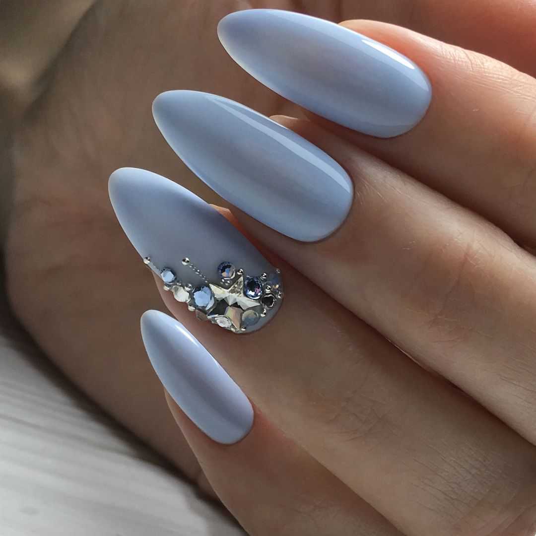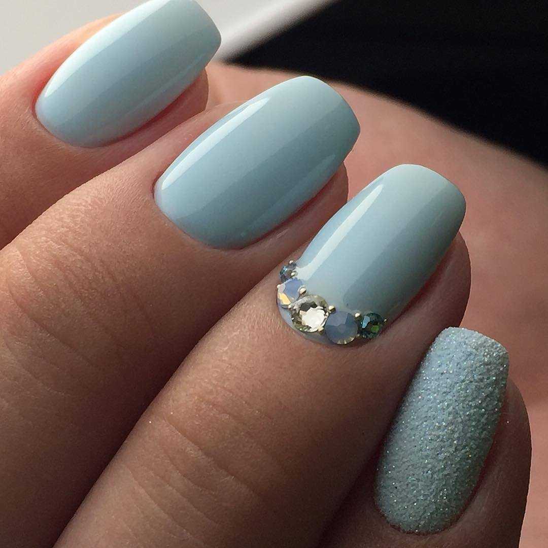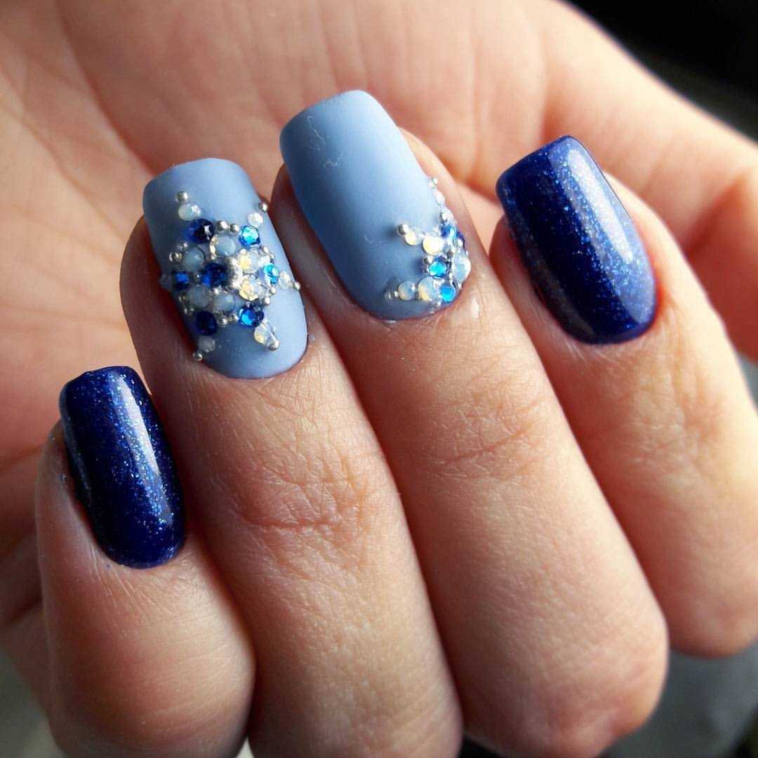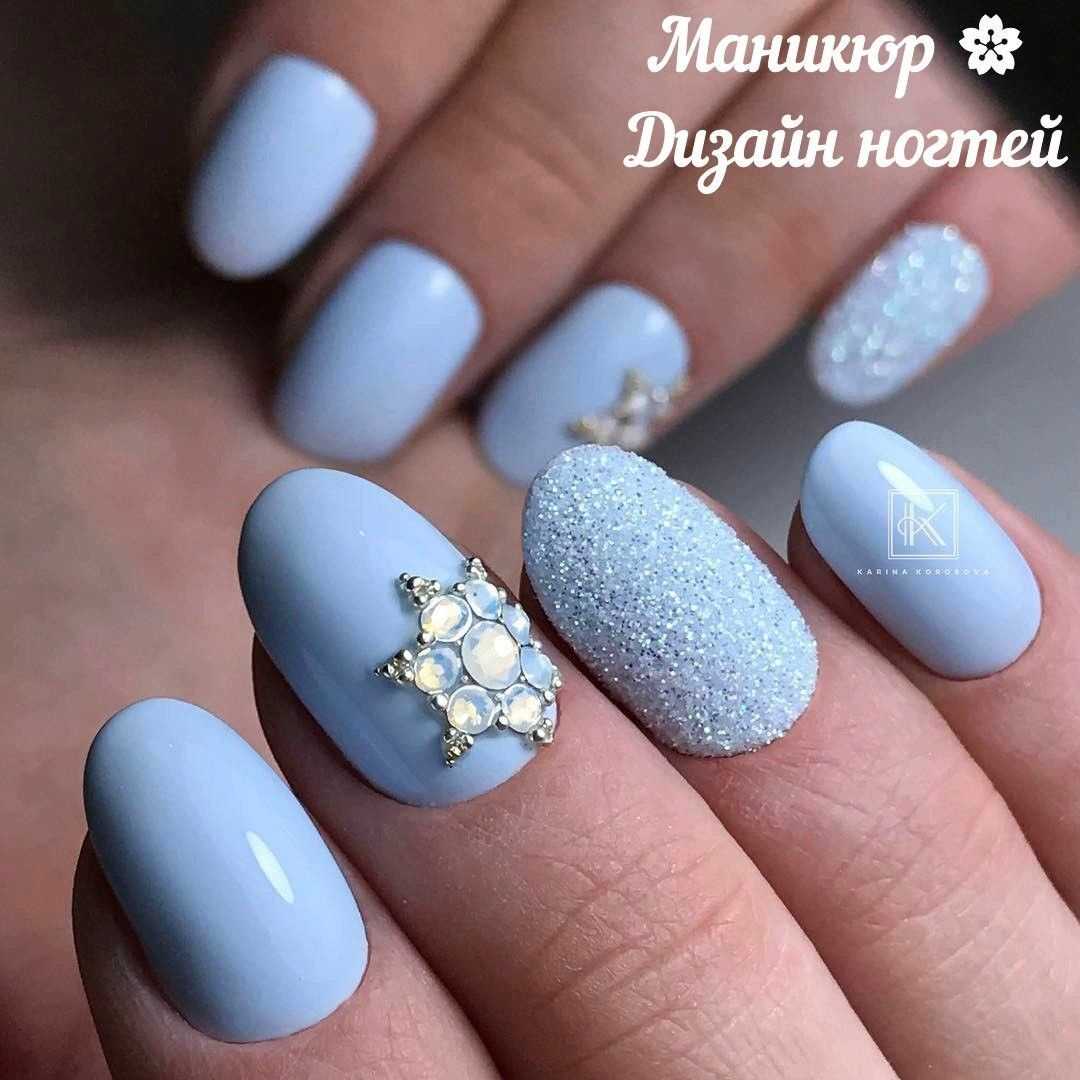 Голубой маникюр со стразами 2020: актуальные идеи декора ногтей