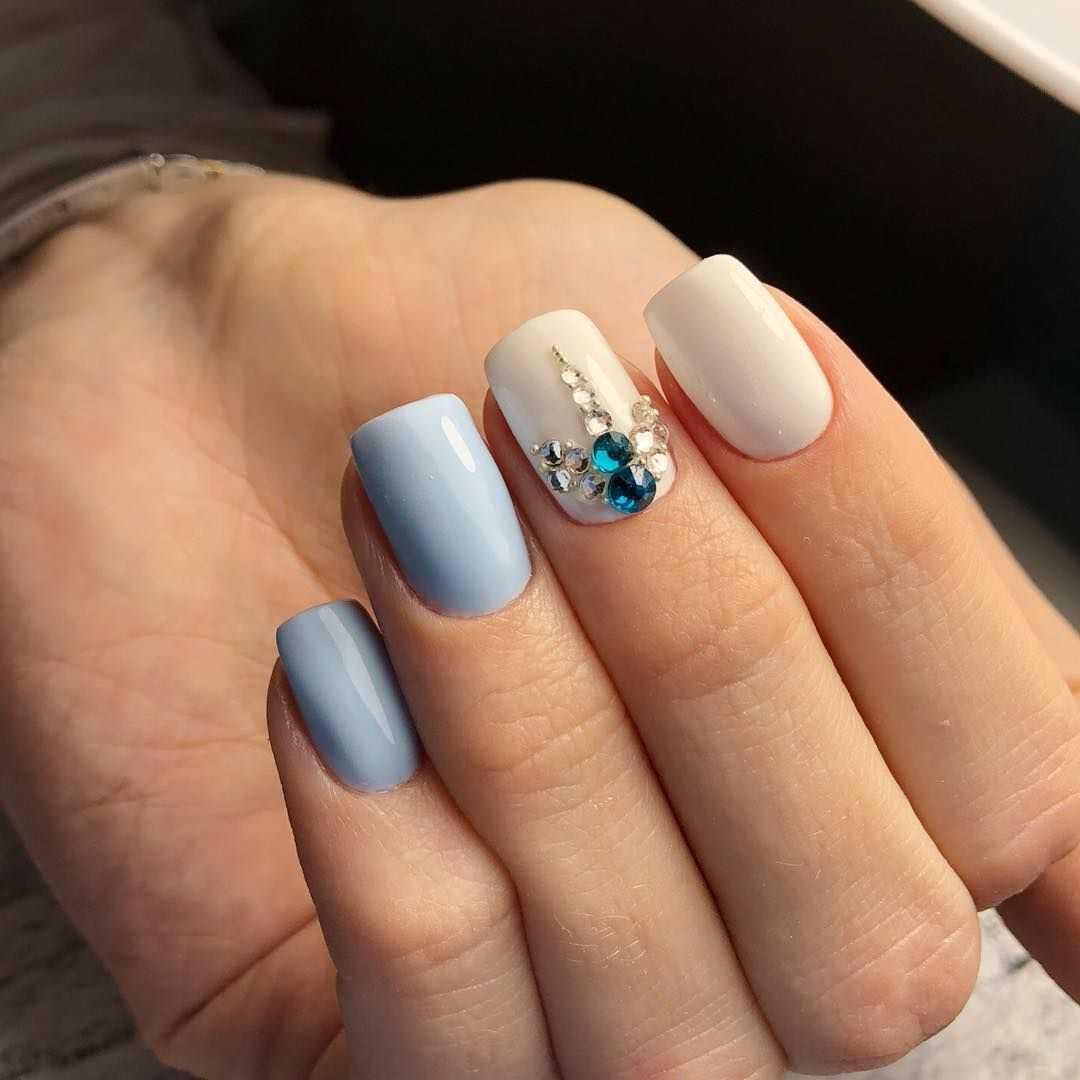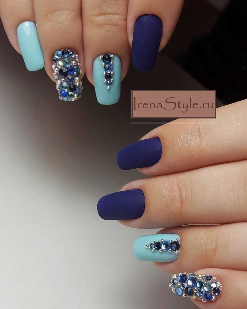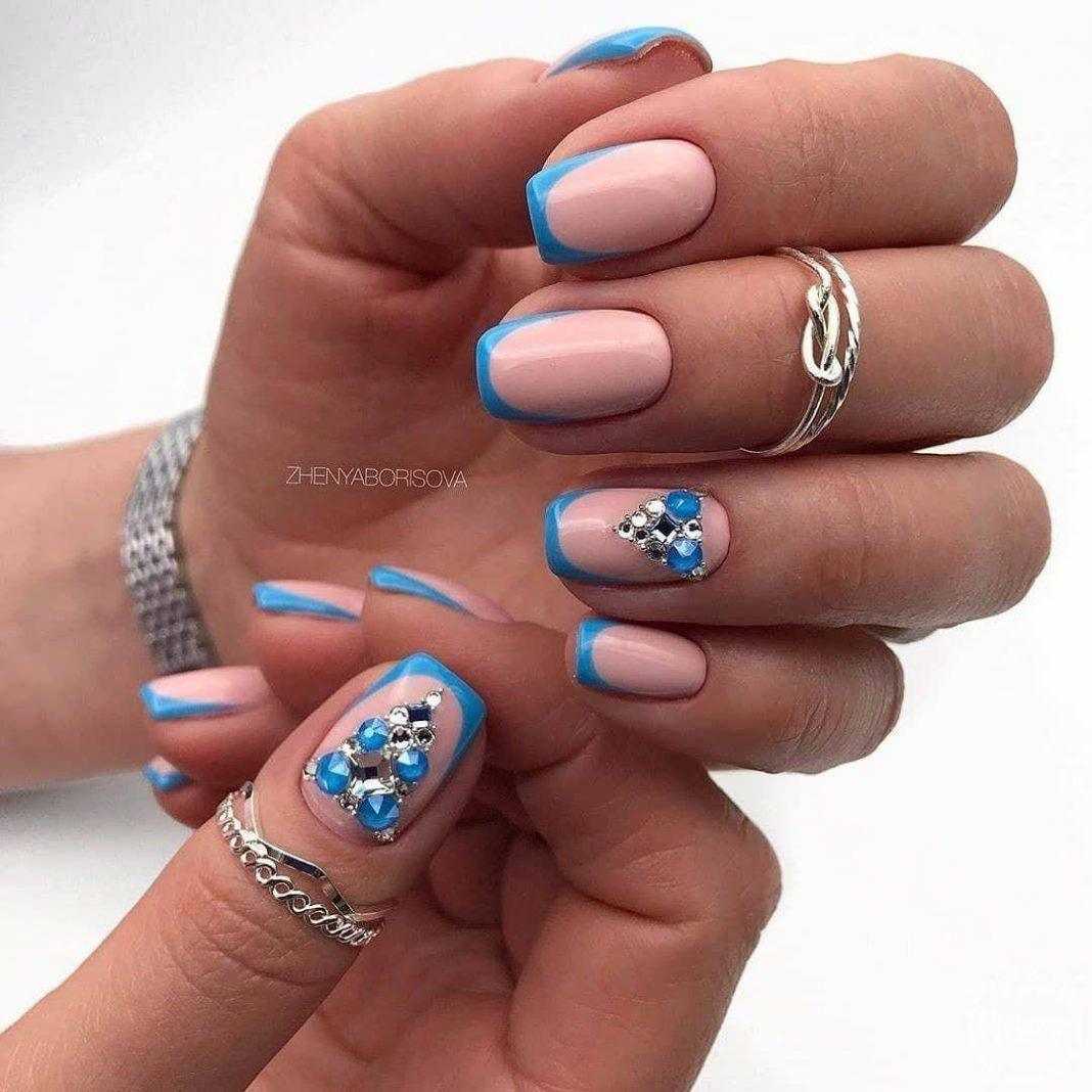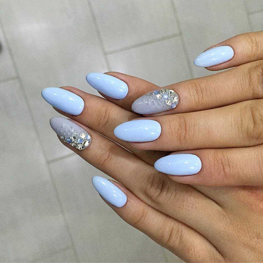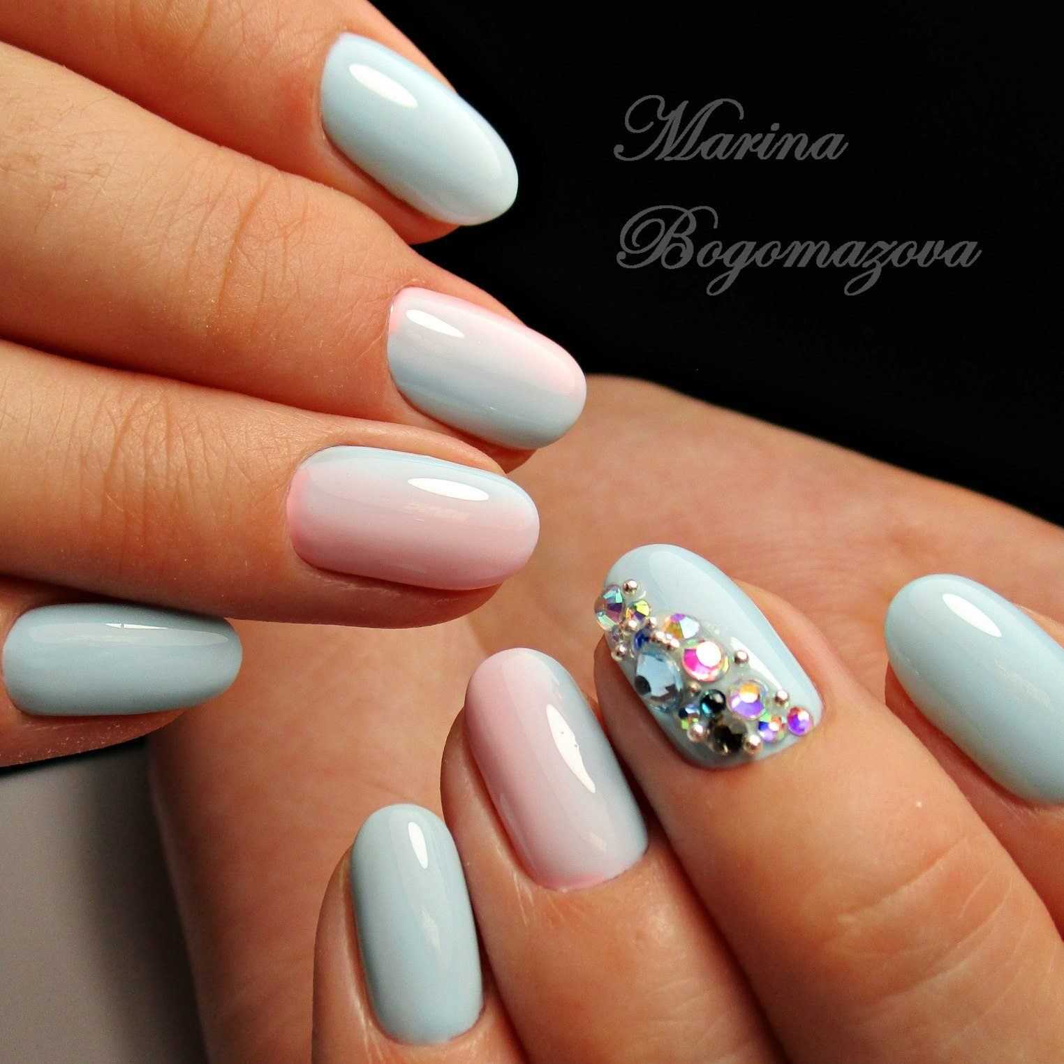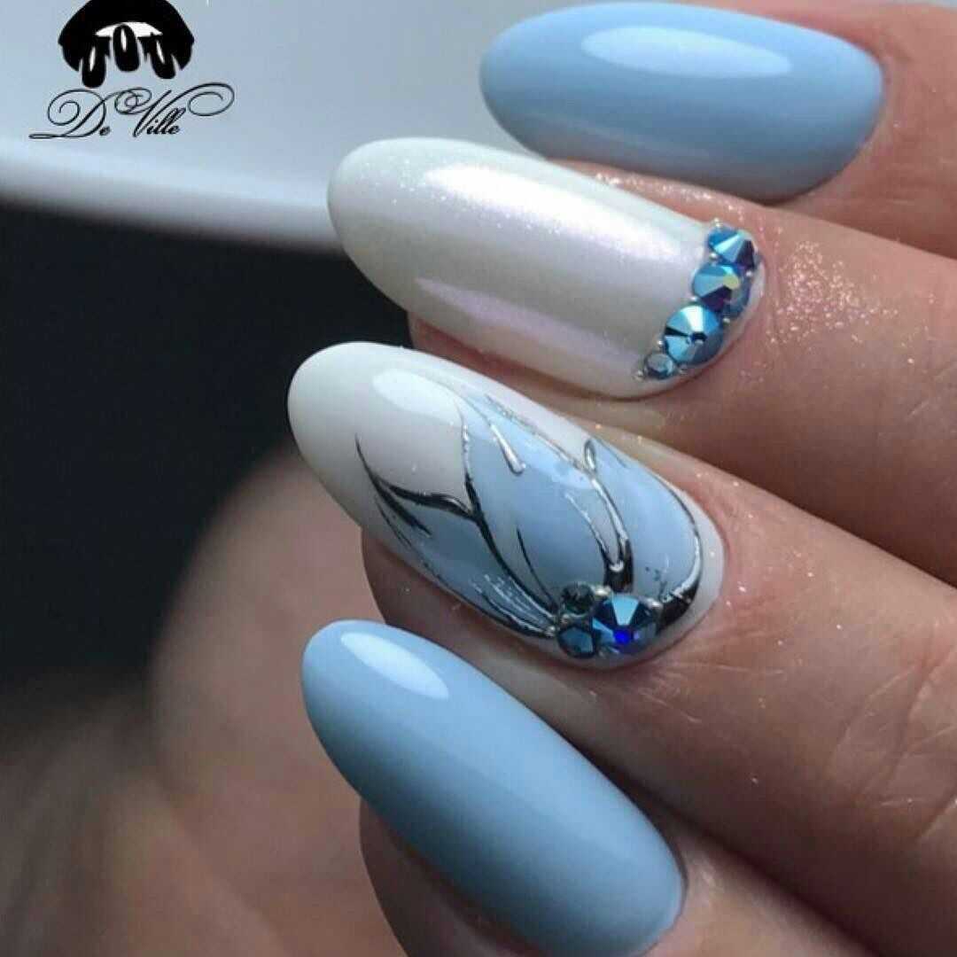 Голубой маникюр со стразами 2020: актуальные идеи декора ногтей