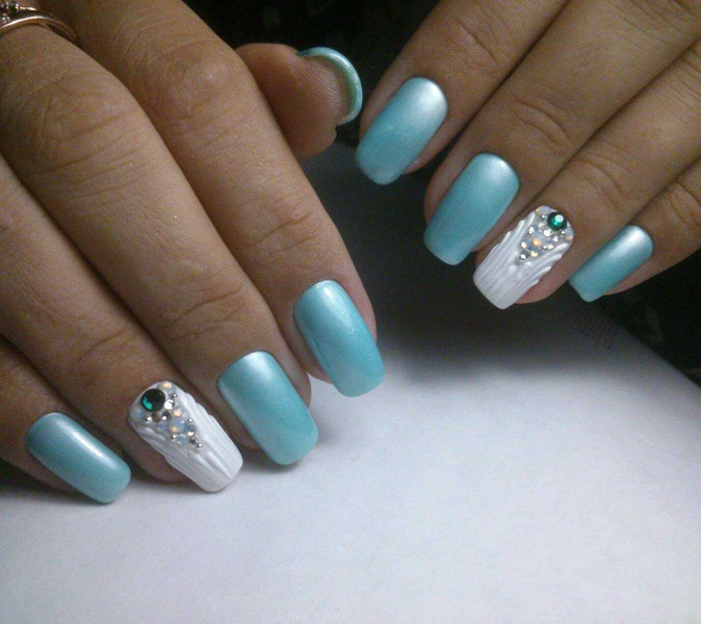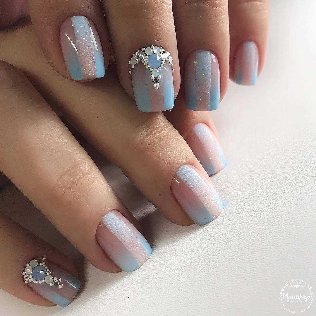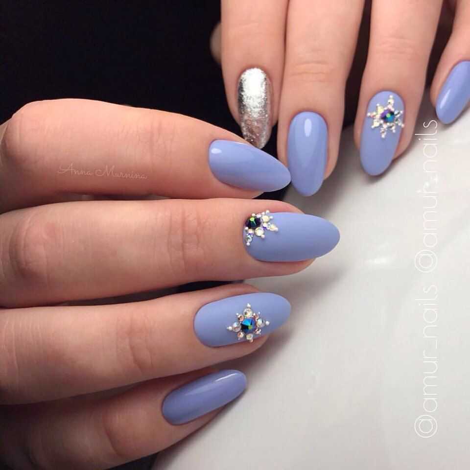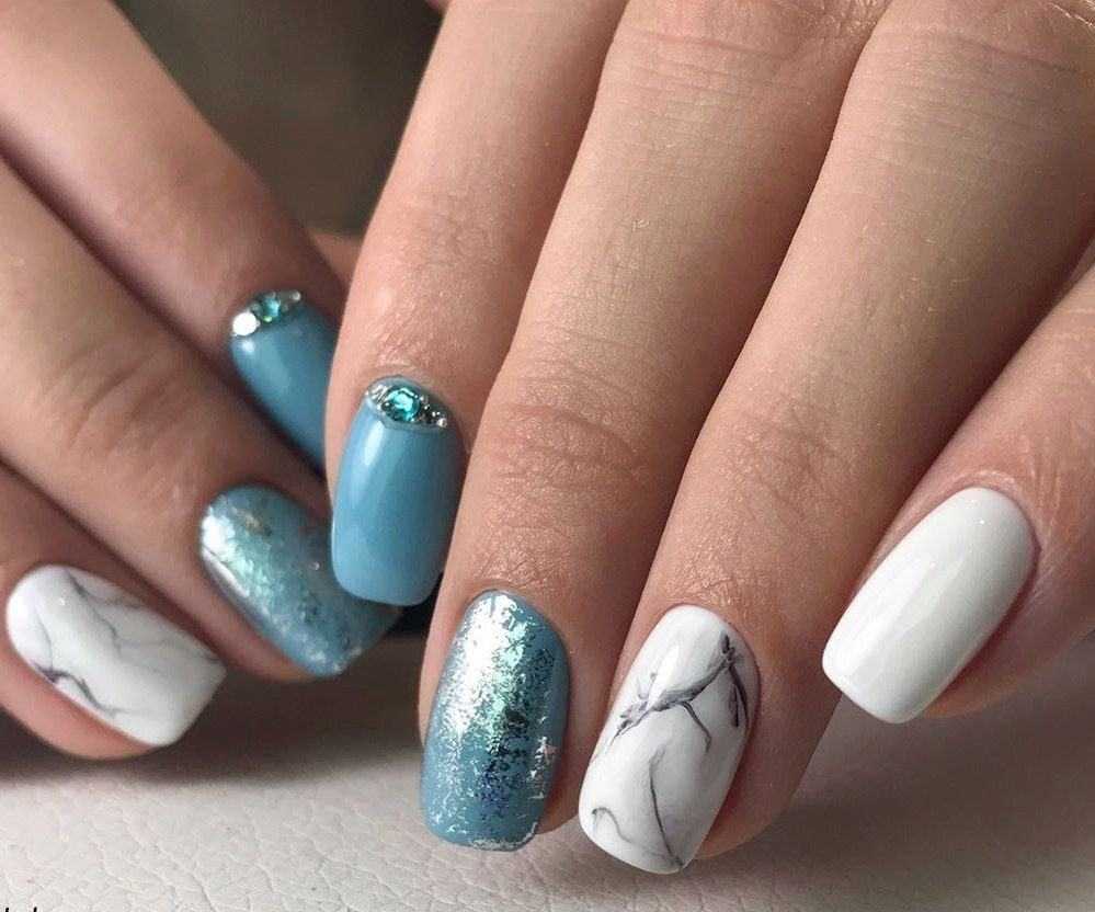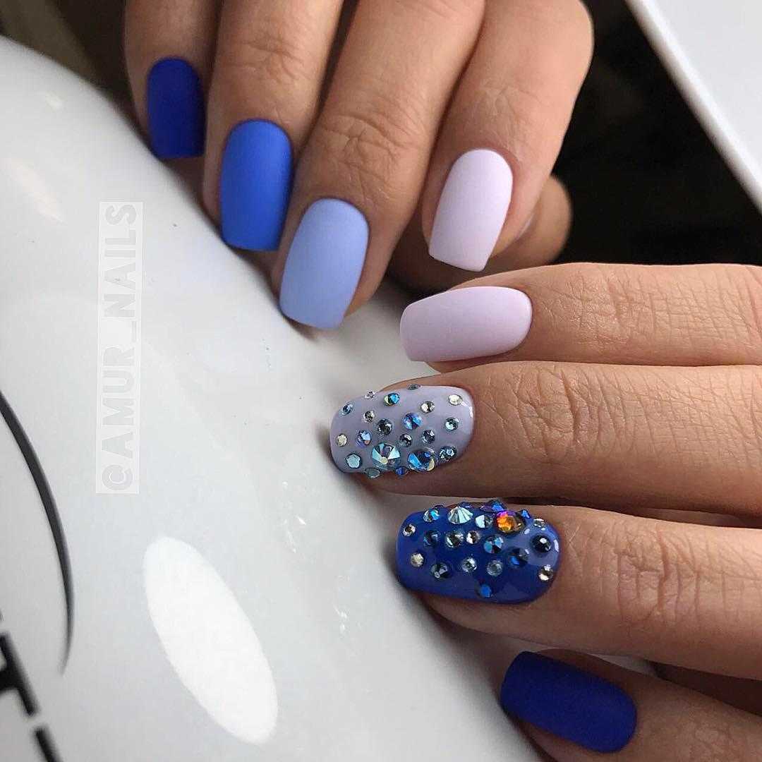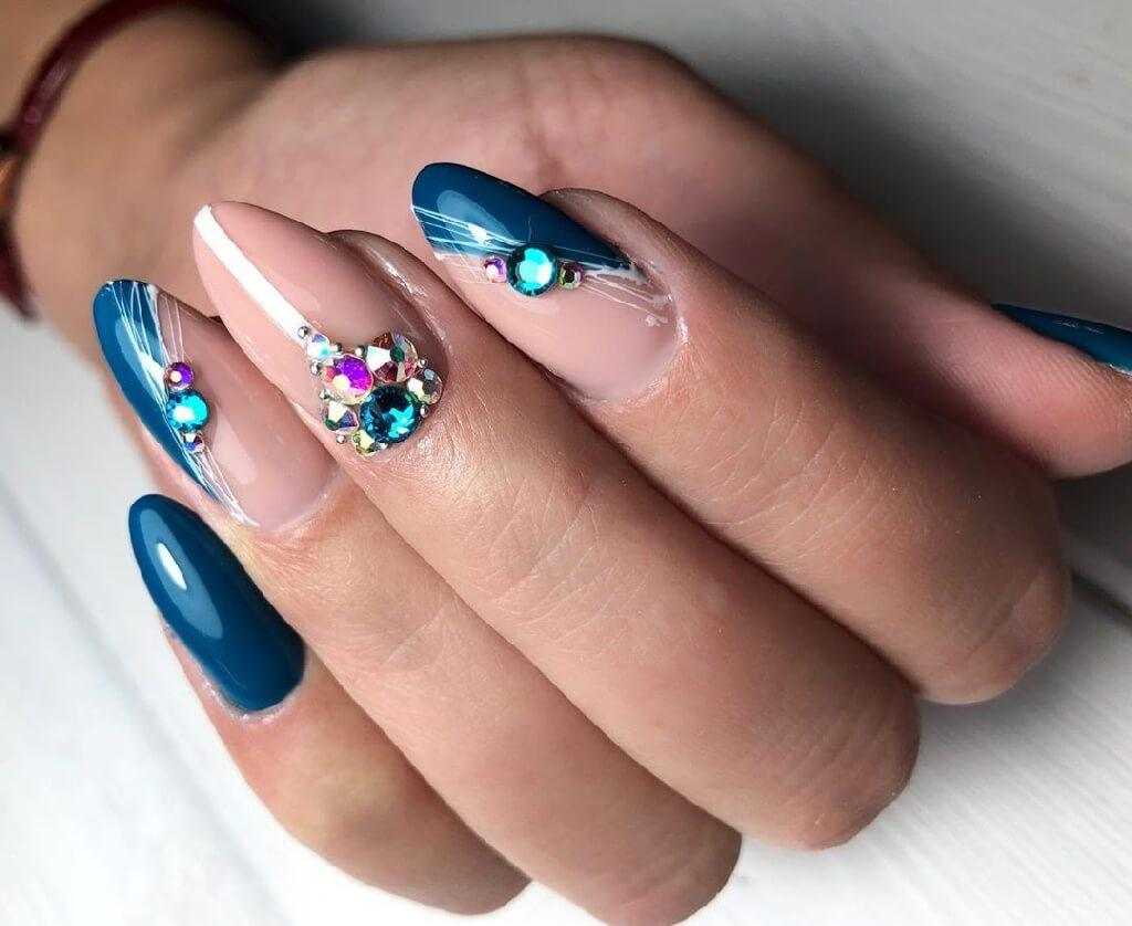 Голубой маникюр со стразами 2020: актуальные идеи декора ногтей