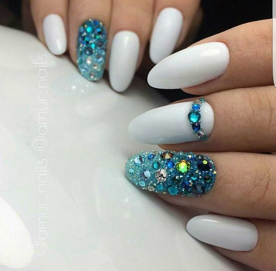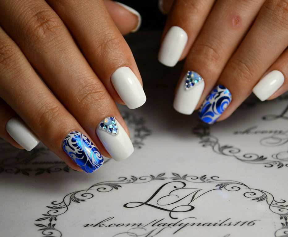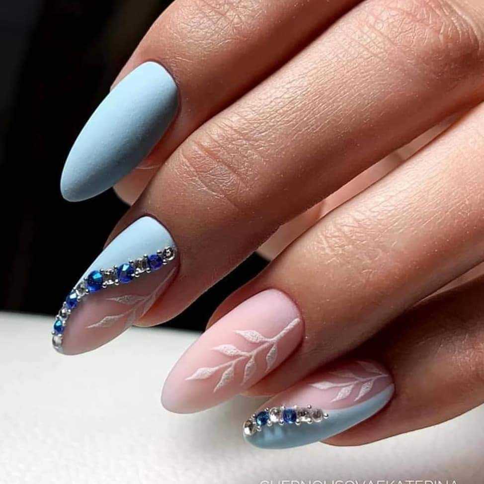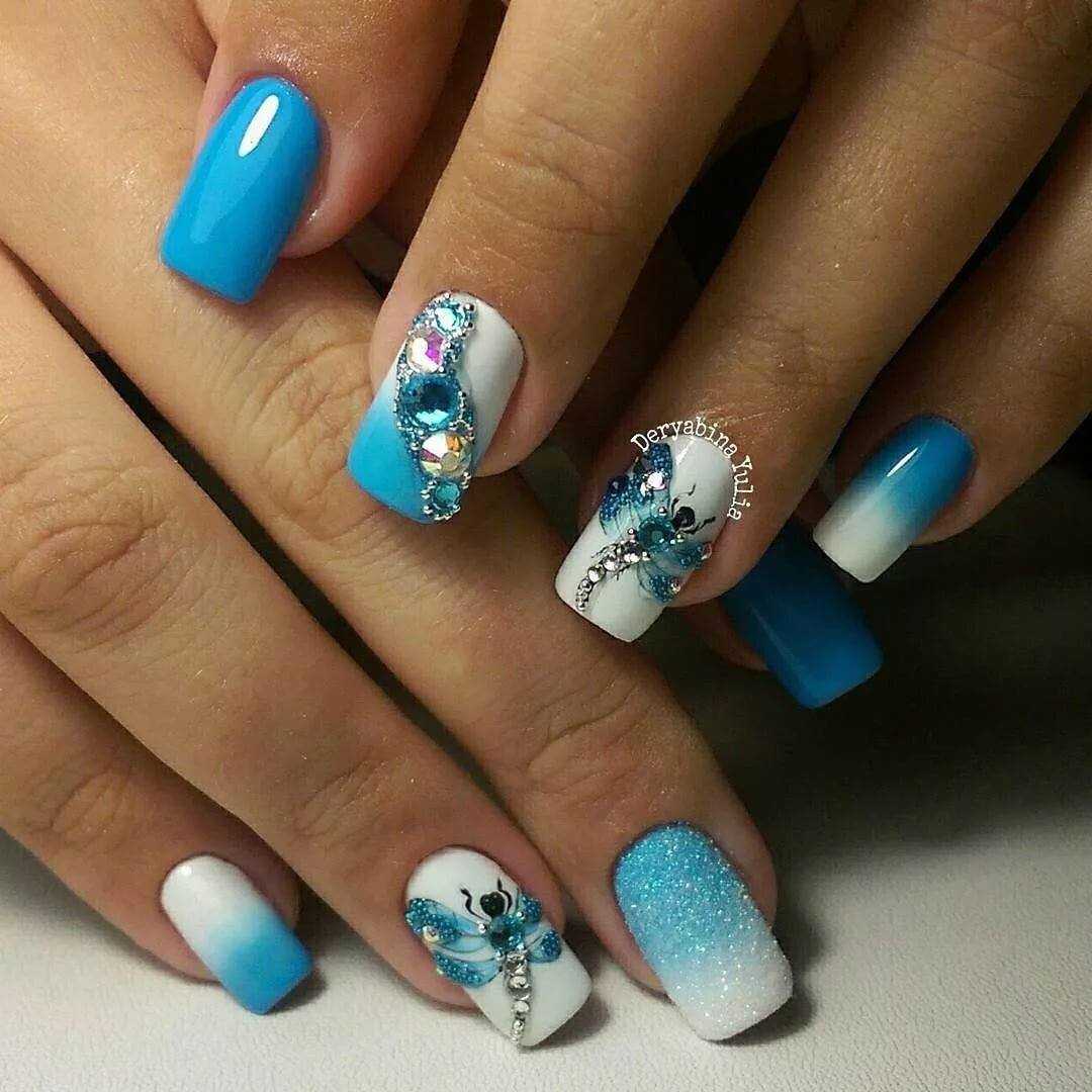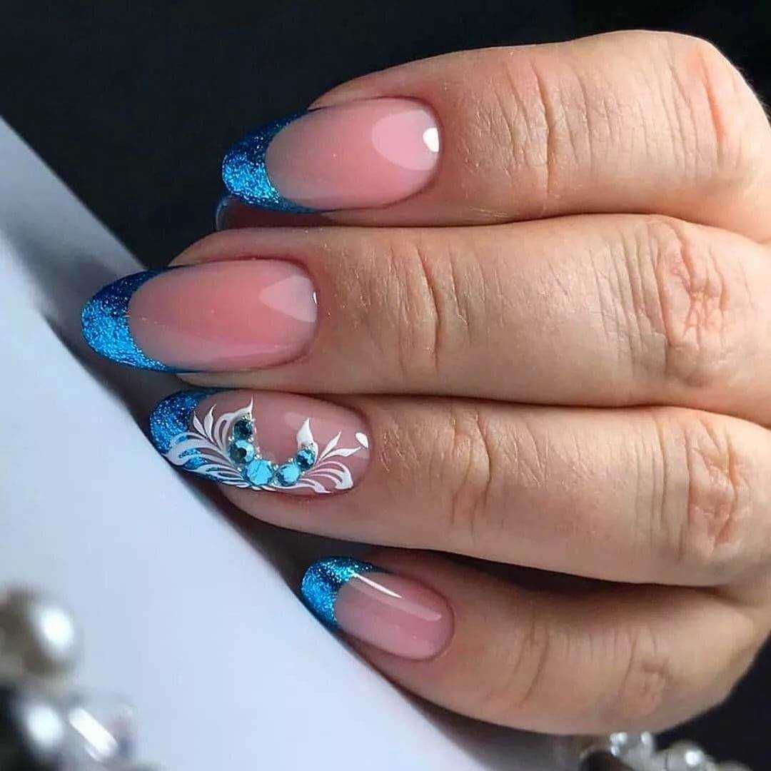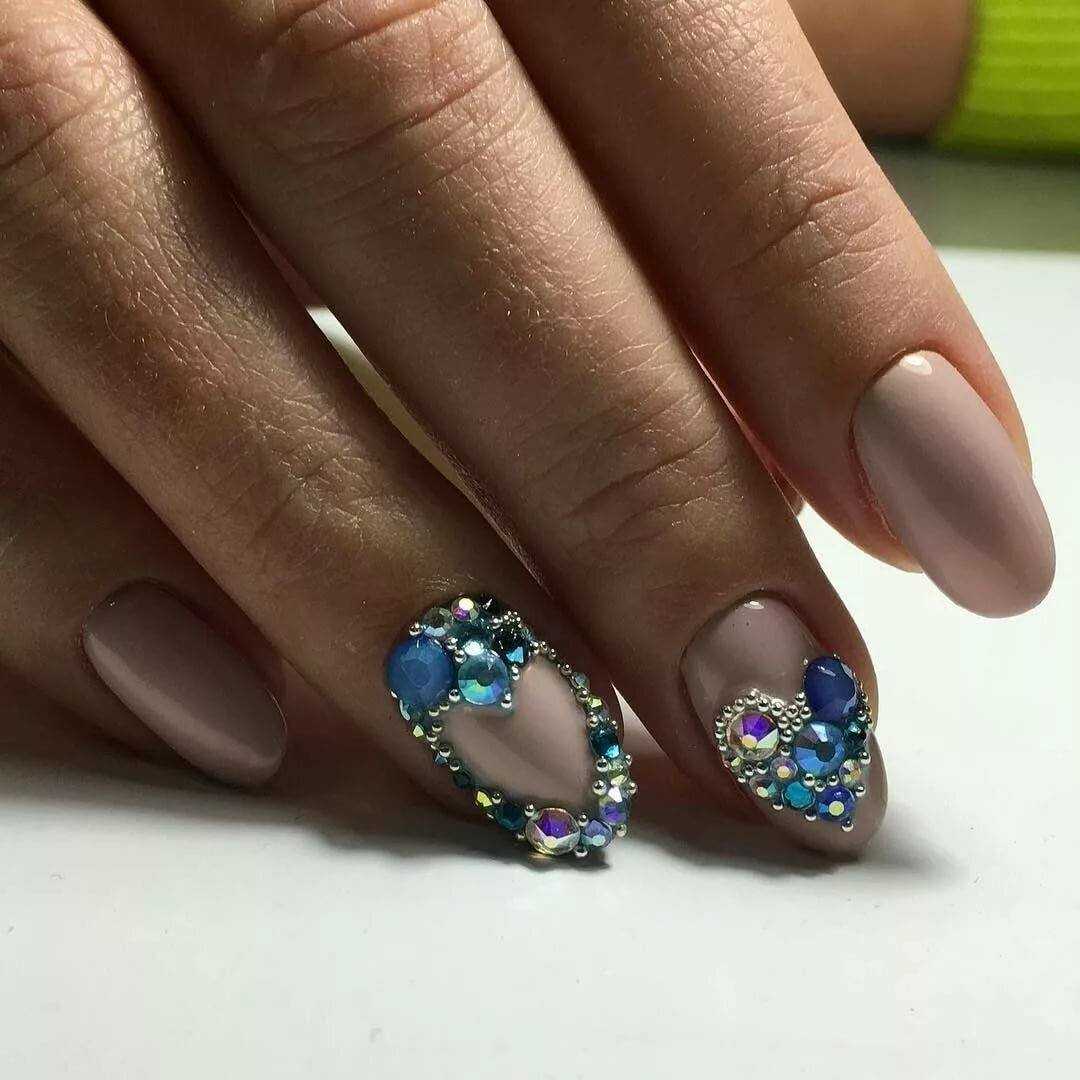 Голубой маникюр со стразами 2020: актуальные идеи декора ногтей