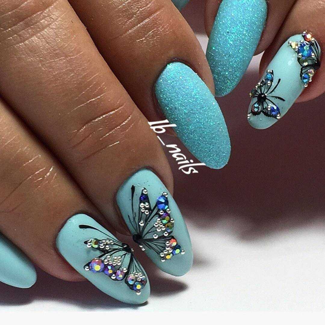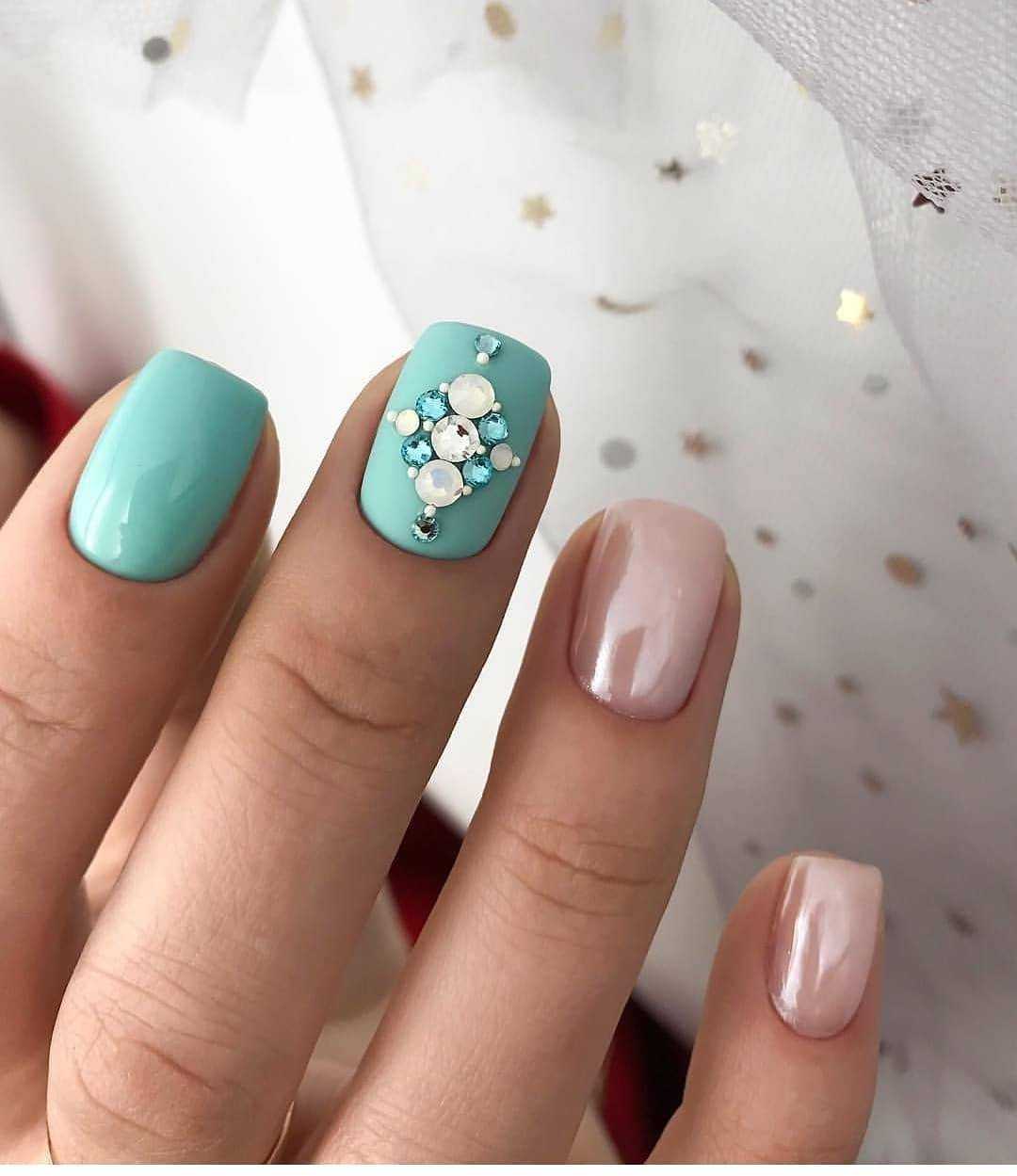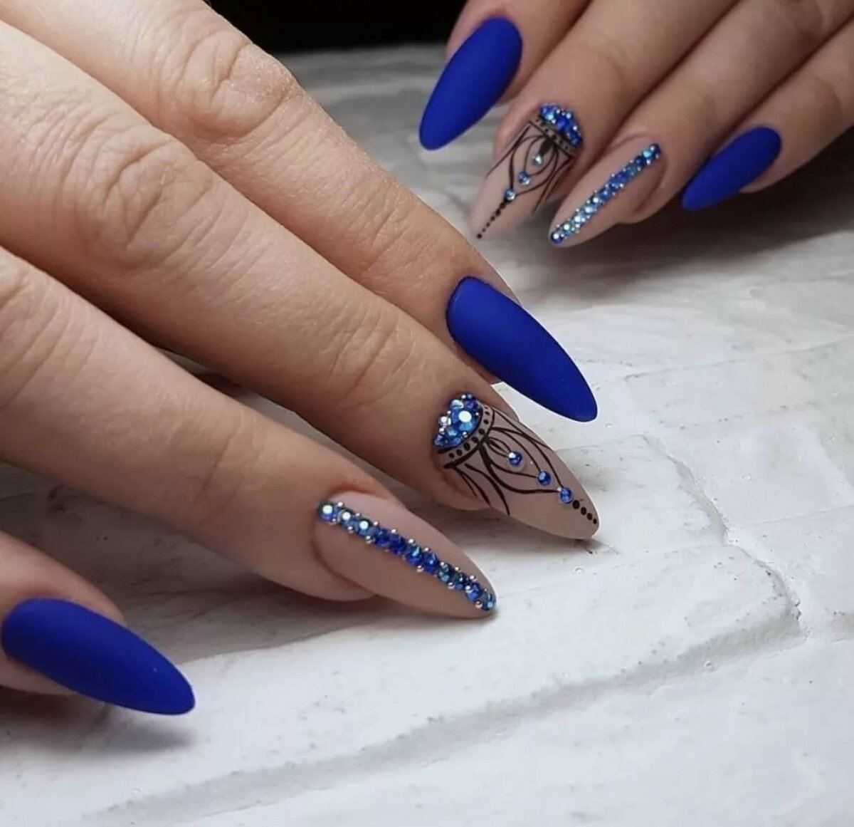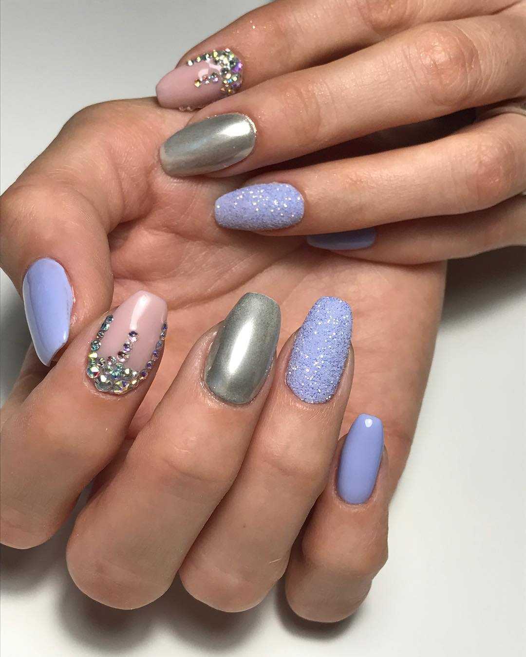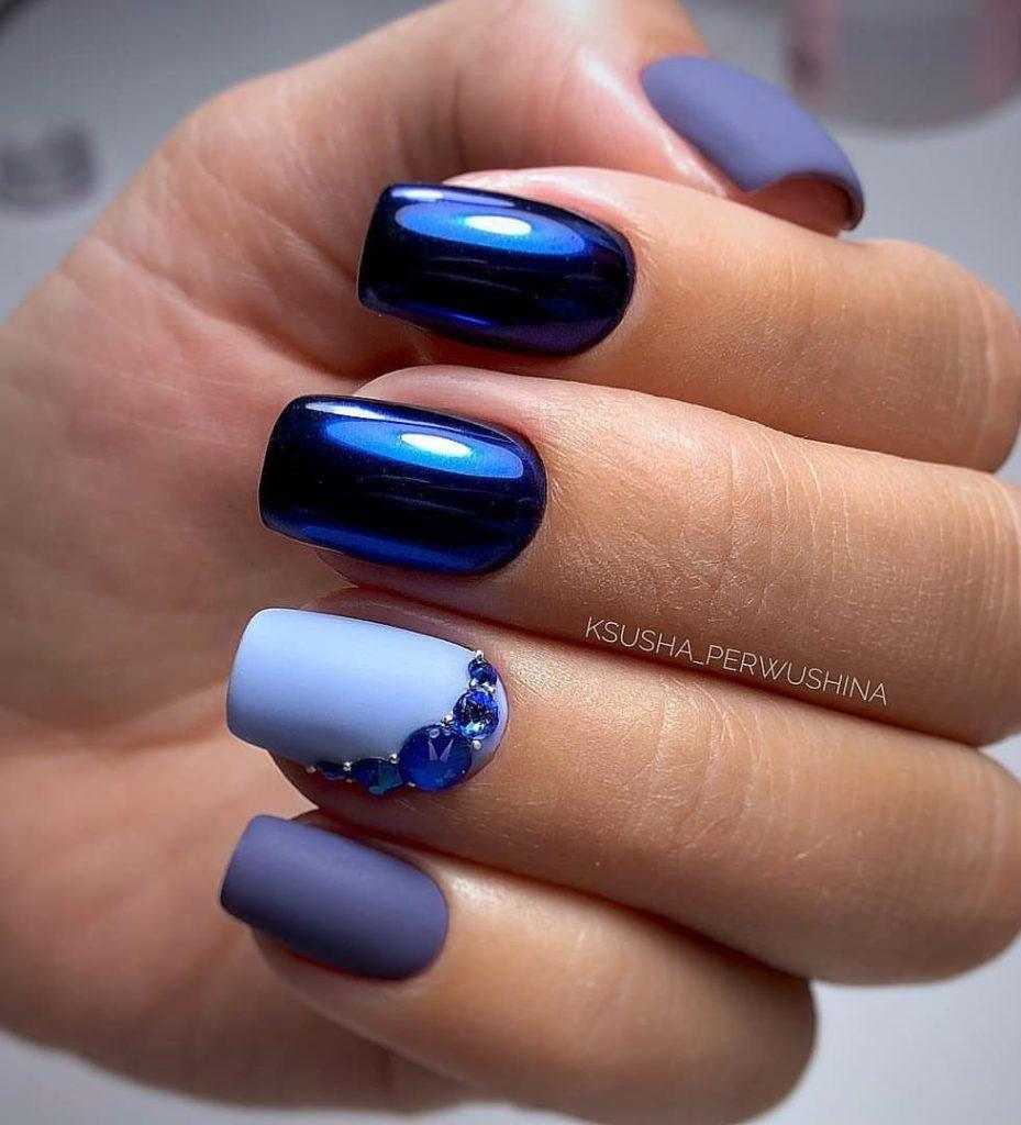 Голубой маникюр со стразами 2020: актуальные идеи декора ногтей