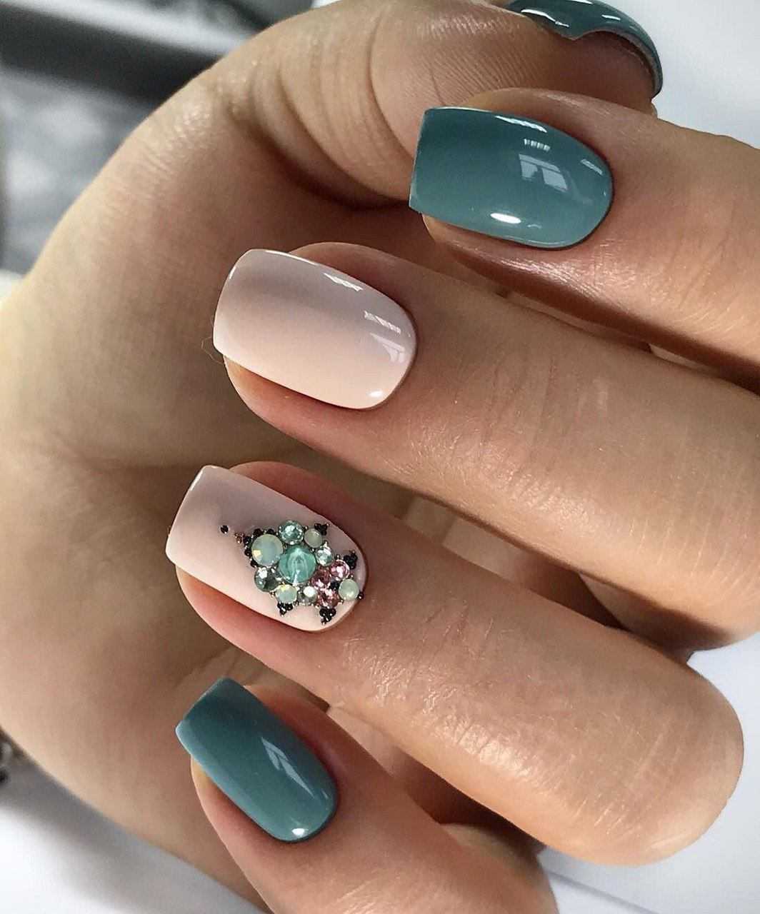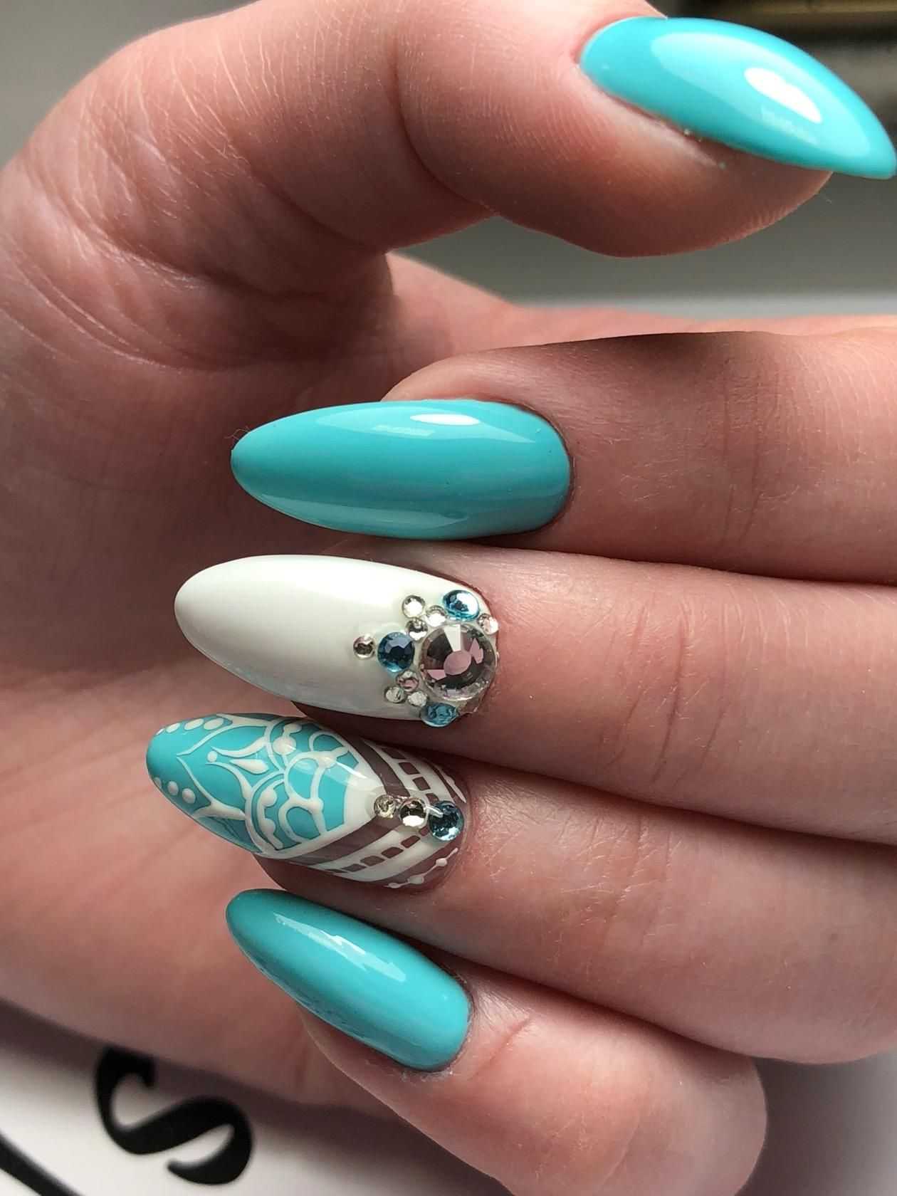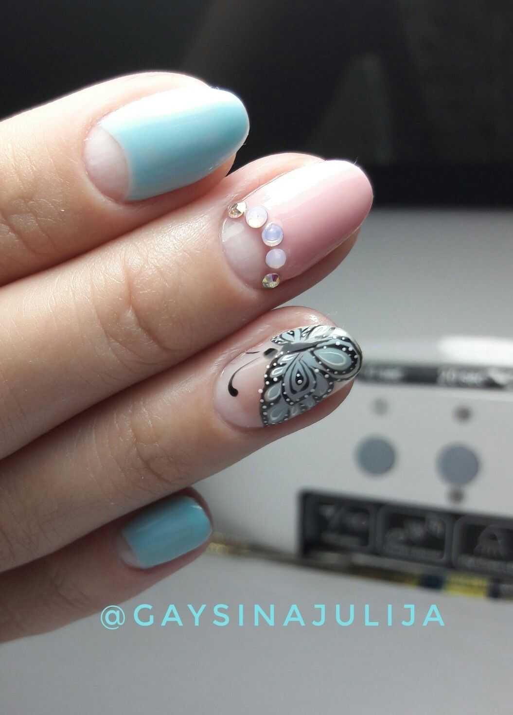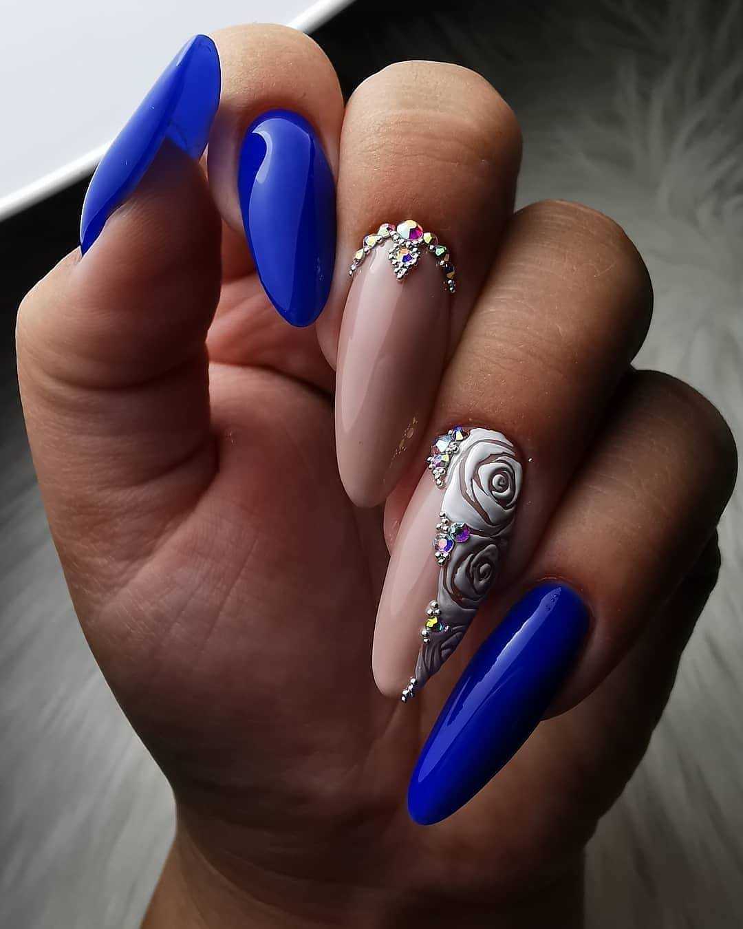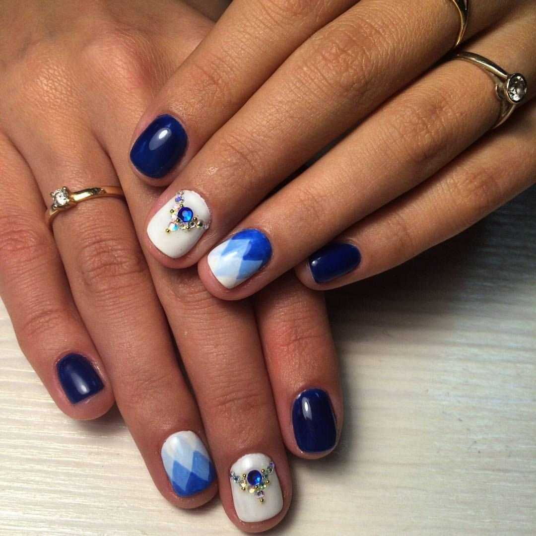 Голубой маникюр со стразами 2020: актуальные идеи декора ногтей