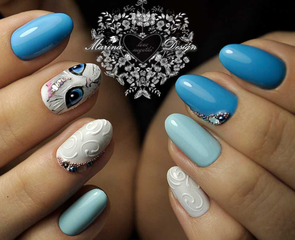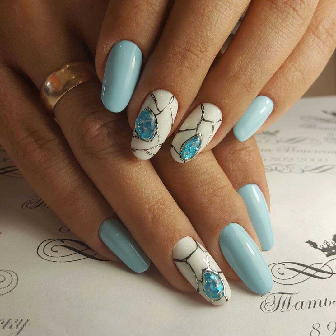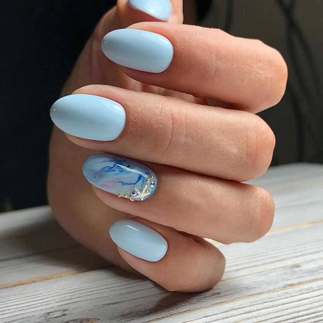 Маникюр голубого цвета с дизайном: тренды 2021 — 2022 года