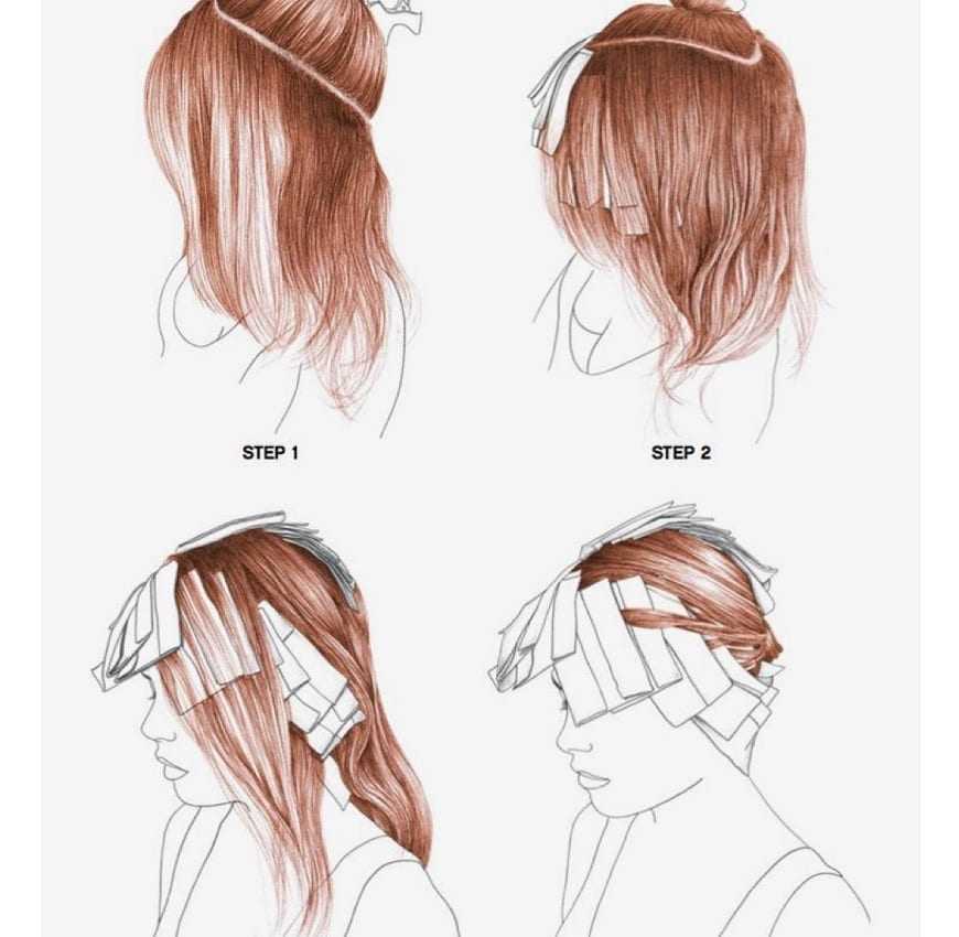 - Волосы хорошо моют и влажными разделяют вертикальным пробором на пять рабочих зон: 2 височные, 2 затылочные и одну теменную. Прочешите каждую расческой с мелкими зубчиками и закрепите отдельно.