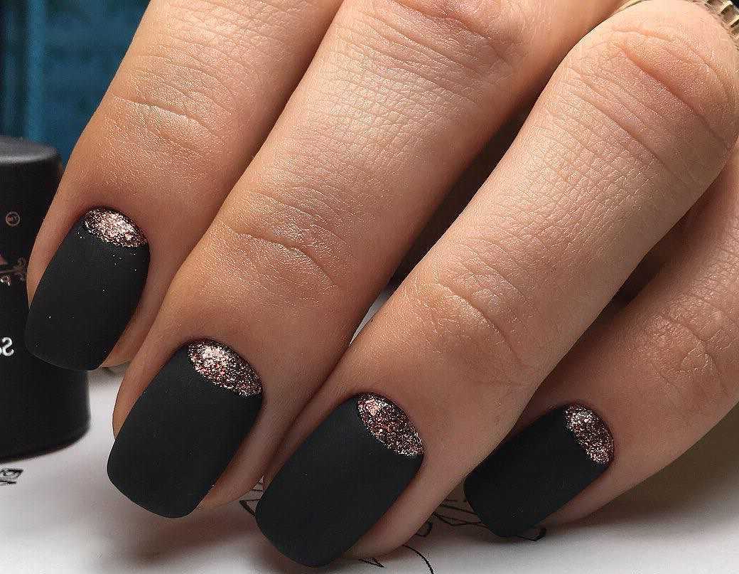 При его создании можно задействовать оттенки с перламутровым переливом или дополнить его блестками. Самый универсальный маникюр – «черный мрамор», который подходит под все наряды.