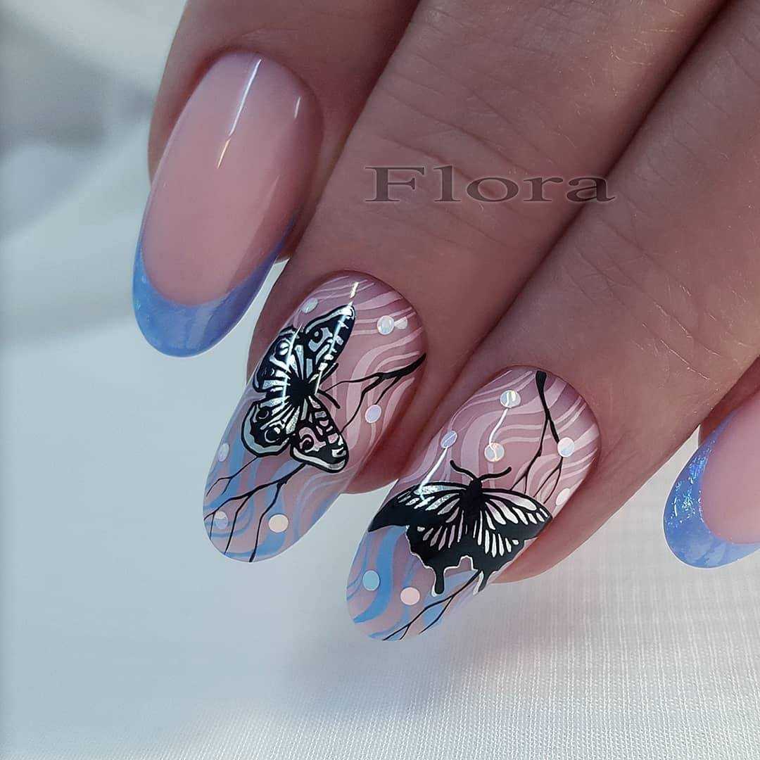 Нежно-голубой цвет в маникюре часто встречается весной и летом. При этом преобразить ноготки с помощью голубого цвета можно и зимой, украсив поверхность снежинками, зимними картинами природы или праздничными рисунками. Для создания нежного маникюра с голубым часто используют розовый, бежевый, красный, черный и белый цвет. Голубой цвет используют как основной, остальными же цветами прорисовывают бутоны, геометрические фигуры, цветы и абстракции. Часто при выполнении рисунка на ногтях хочется легкости и нежности. В таком случае выбирают маникюр с нежно-голубыми цветами, где основным цветом будет белый.