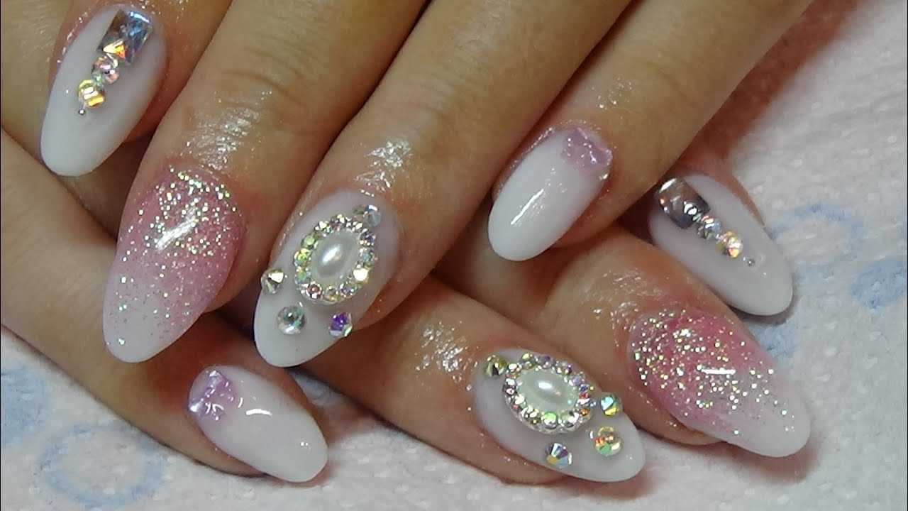 Идеальный оттенок камней – перламутровый. Он не так банален, как серебряный, который используется в большинстве задумок, и хорошо вписывается в бело-розовую цветовую гамму. Однако стоит учесть нюанс – блестки с лиловым или фиолетовым отливом будут уместнее, чем с желтым или зеленым.