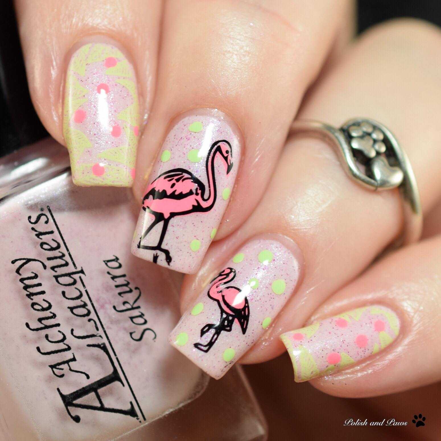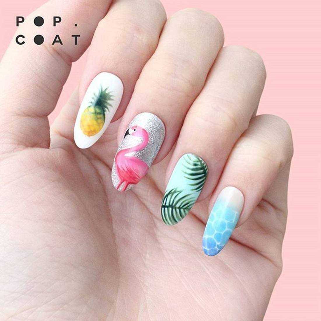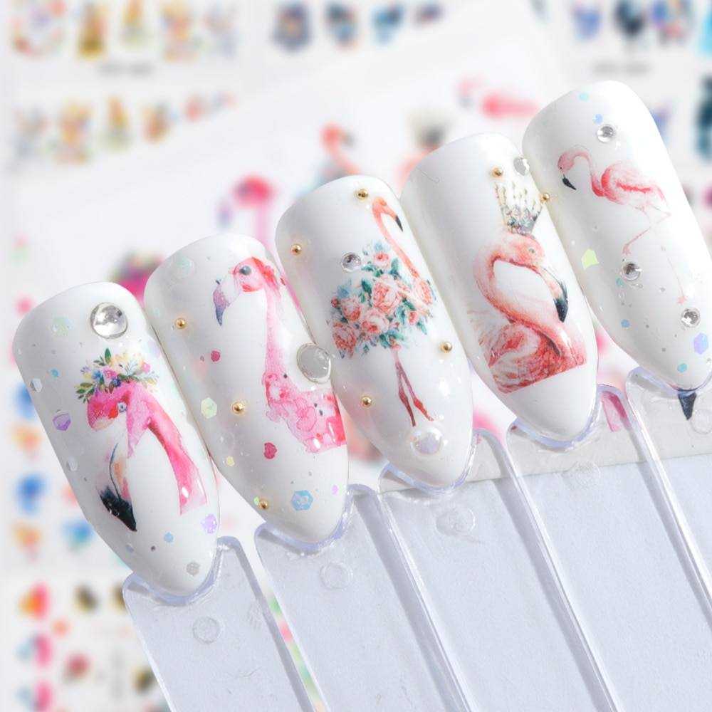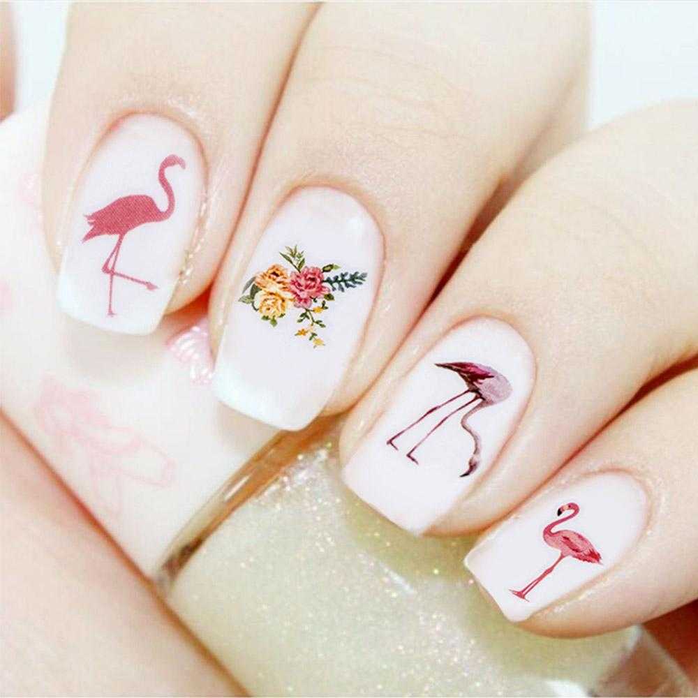 - слайдеры – находка и спасение для многих девушек, которые хотят видеть на своих ноготках четкие и яркие рисунки. Узор фламинго и других деталей нейл-арта уже готовы, осталось только перенести их на поверхность ногтевых пластин. Окуните слайдер на пару секунд в теплую воду и приложите к ноготку. Стильный дизайн с фламинго готов.