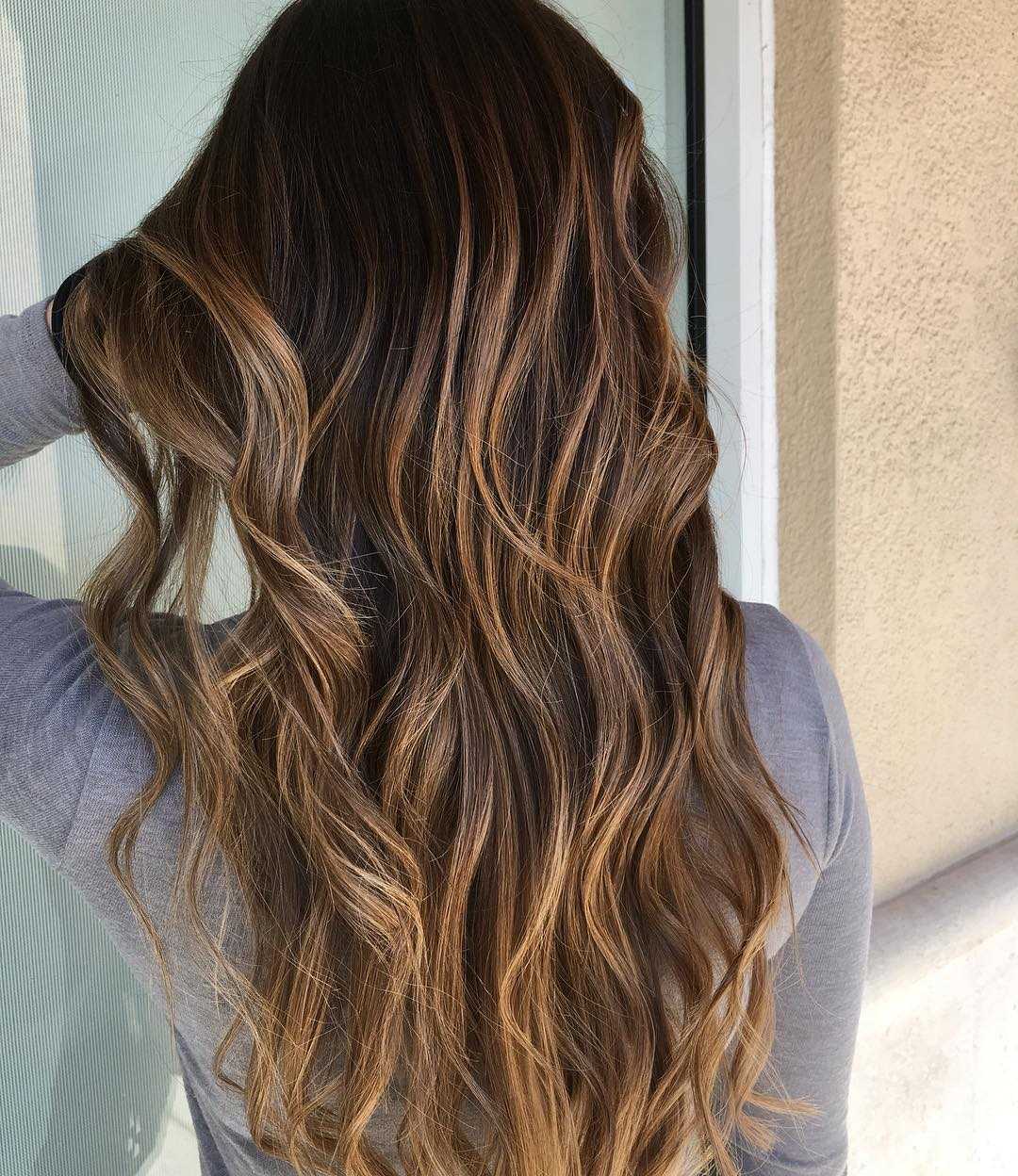 Основоположница этого тренда Кори Тутл советует основную часть волос окрасить в шоколадный или коричневый цвет, а блики выделить янтарными и карамельными оттенками. Плавный переход от темного к светлому цвету придает волосам невероятный блеск и роскошную игру оттенков.