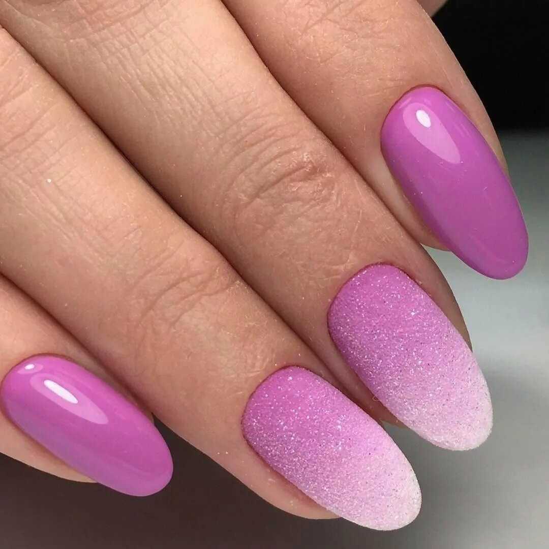Маникюр в фиолетовых тонах: фиолетовый с желтым, черным, золотым, белым, розовым, зеленым