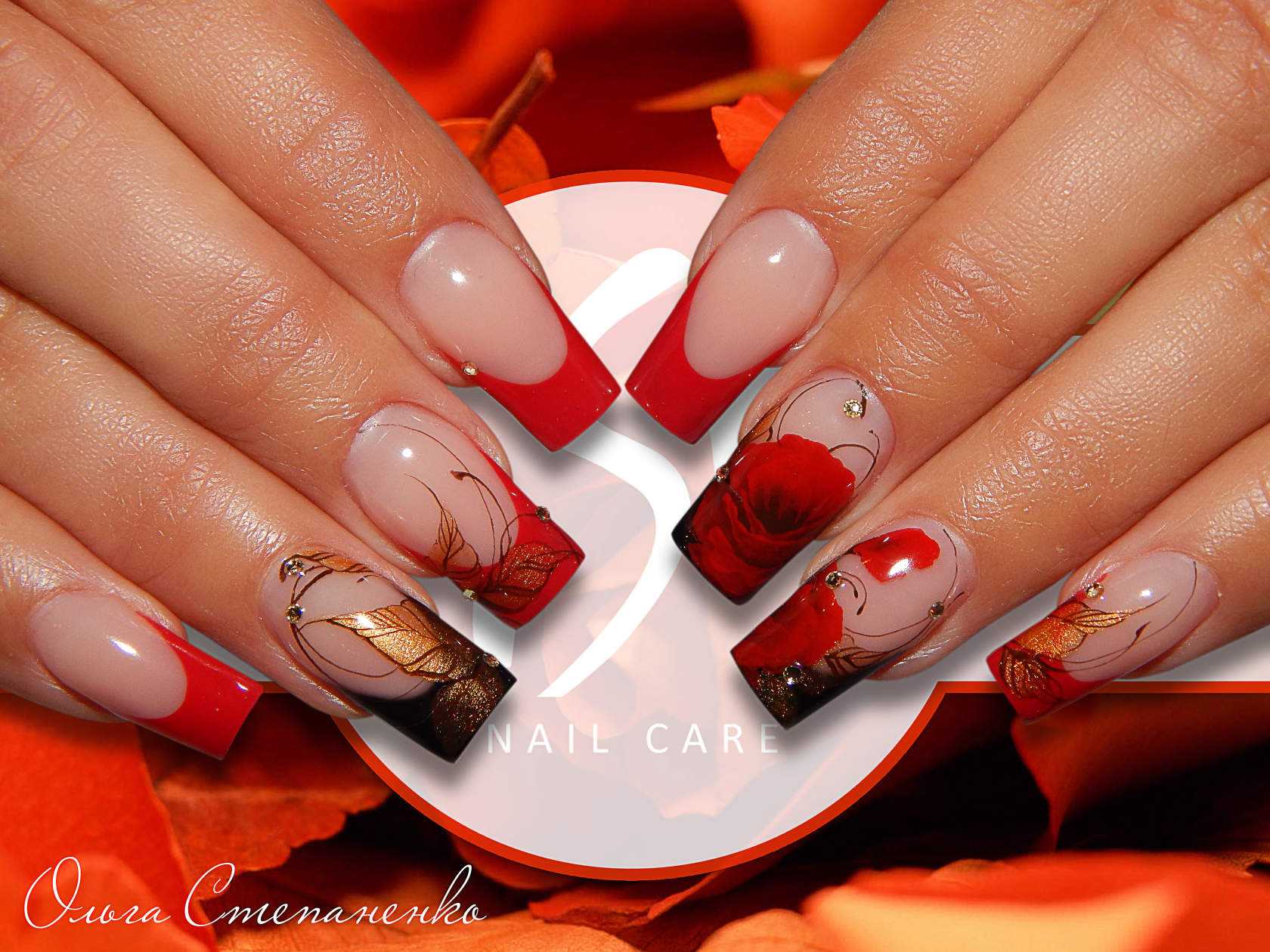 Хотя красный по своей сути является самодостаточным и насыщенным оттенком, если вы дополните красный френч соответствующим декором, вы получите уникальный и модный дизайн ногтей. Прекрасно будет смотреться цветочный узор на красном, выполненный в черном или белом цвете.