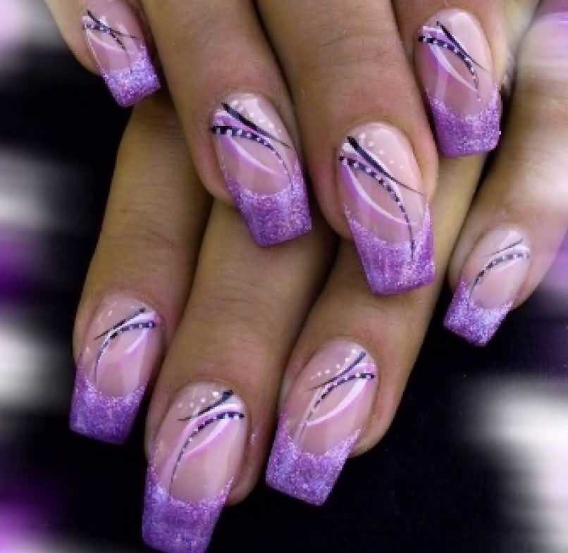 Нейл-арт — фиолетовый с серебристой каемкой