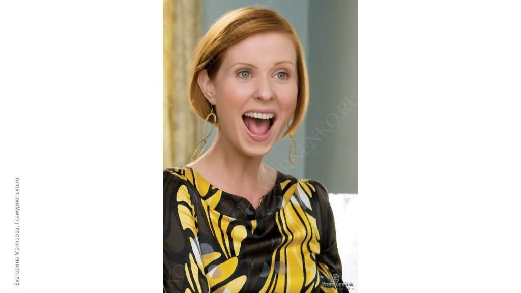 На фотографии у Синтии Никсон, исполнительницы роли Миранды в сериале «Секс в большом городе», волосы медно-рыжие. Если присмотреться внимательней, можно заметить, что натуральный цвет у корней немного светлее, но его оттенок все равно остается рыжеватым. Ее волосы от природы не такие яркие, как медный оттенок, в который они покрашены, но они рыжие.