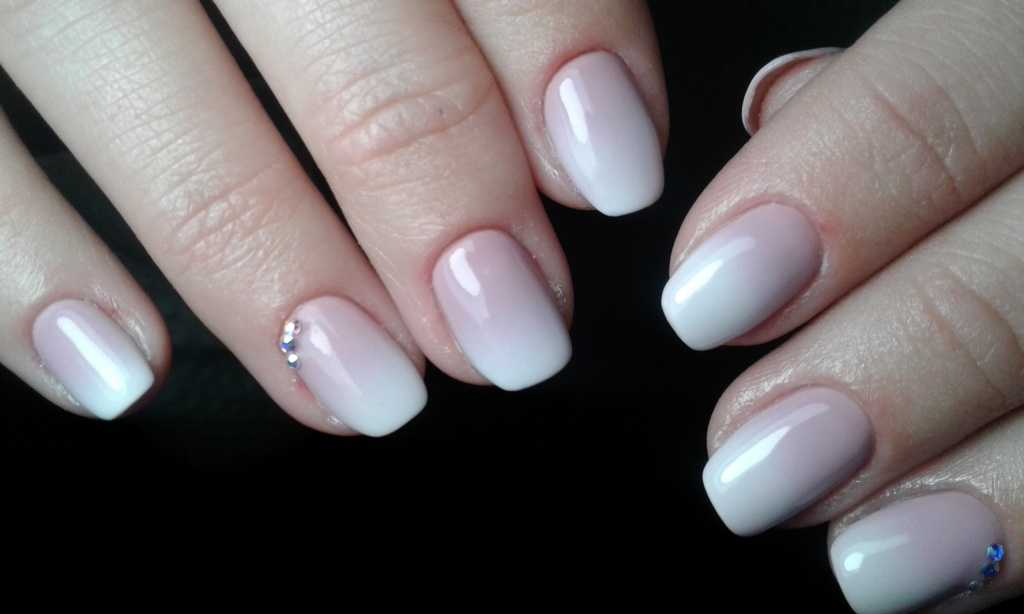 Чтобы в домашних условиях сделать максимально естественные границы, воспользуйтесь обыкновенной губкой. За счет ее пористости у вас получится необходимый эффект. Главное, чтобы не оставалось четких линий. Для этого выполняйте процедуру на основе из прозрачного лака. Спонжем переносите необходимые оттенки на пластину.