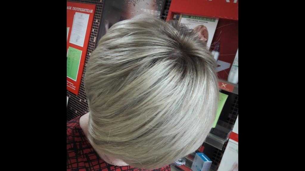 Пепельно-русое омбре на короткие волосы хорошо замаскирует седину на светлых локонах