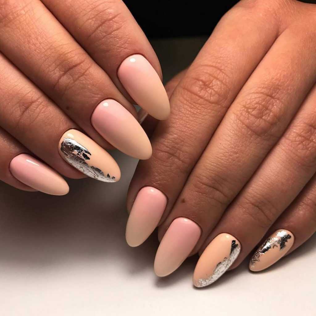 Дизайн ногтей с фольгой миндаль новинки стильные 2021-2022 весна