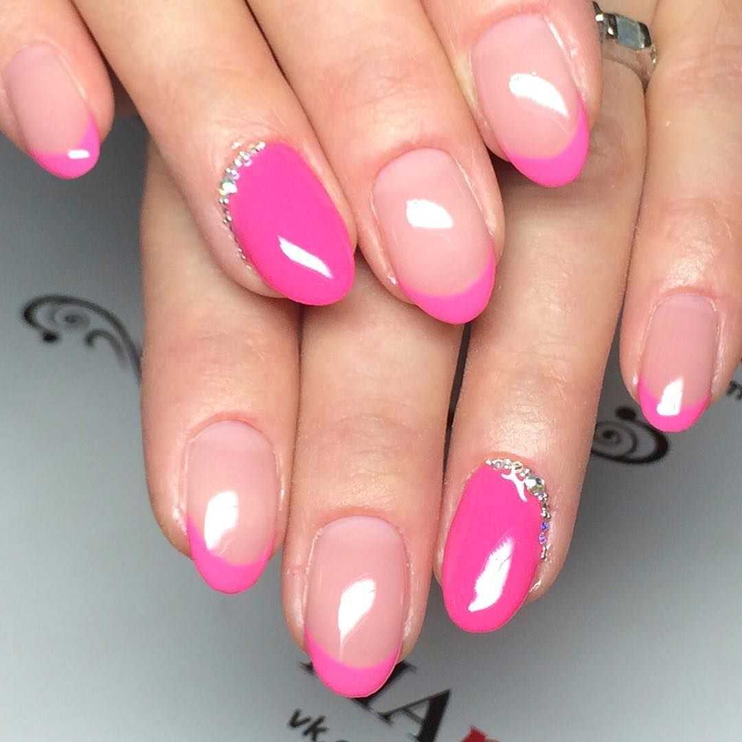 При использовании покрытия насыщенного розового цвета не следует перегружать маникюр украшениями и рисунками. Это будет выглядеть дешево и небрежно. Однако блестки и втирку попробовать стоит. Здесь можно рискнуть и сделать яркий дизайн на всех ногтях.