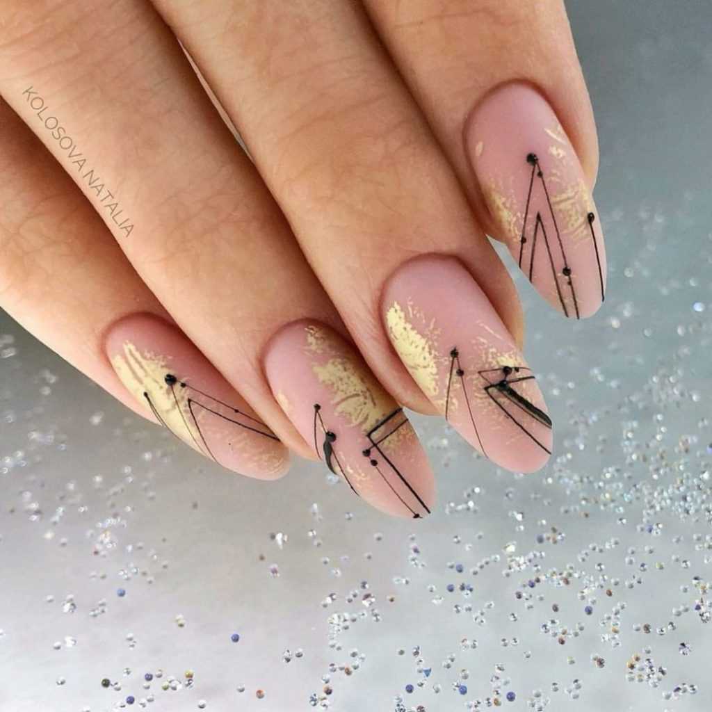 - Самый явный тренд нюдового маникюра 2022 для длинных, миндальных ногтей — рисунки и абстракции. Вовсю используем геометрию, животный принт.