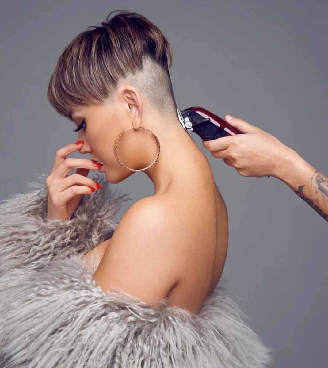 Особой экстравагантностью отличаются шапочки на коротких волосах с выбритыми затылками. От этой вариации целесообразно воздерживаться обладательницам тонких волос. Некоторые особы решаются на смелые эксперименты – выбривая на затылке разнообразные узоры или вовсе окрашивая его различными оттенками.