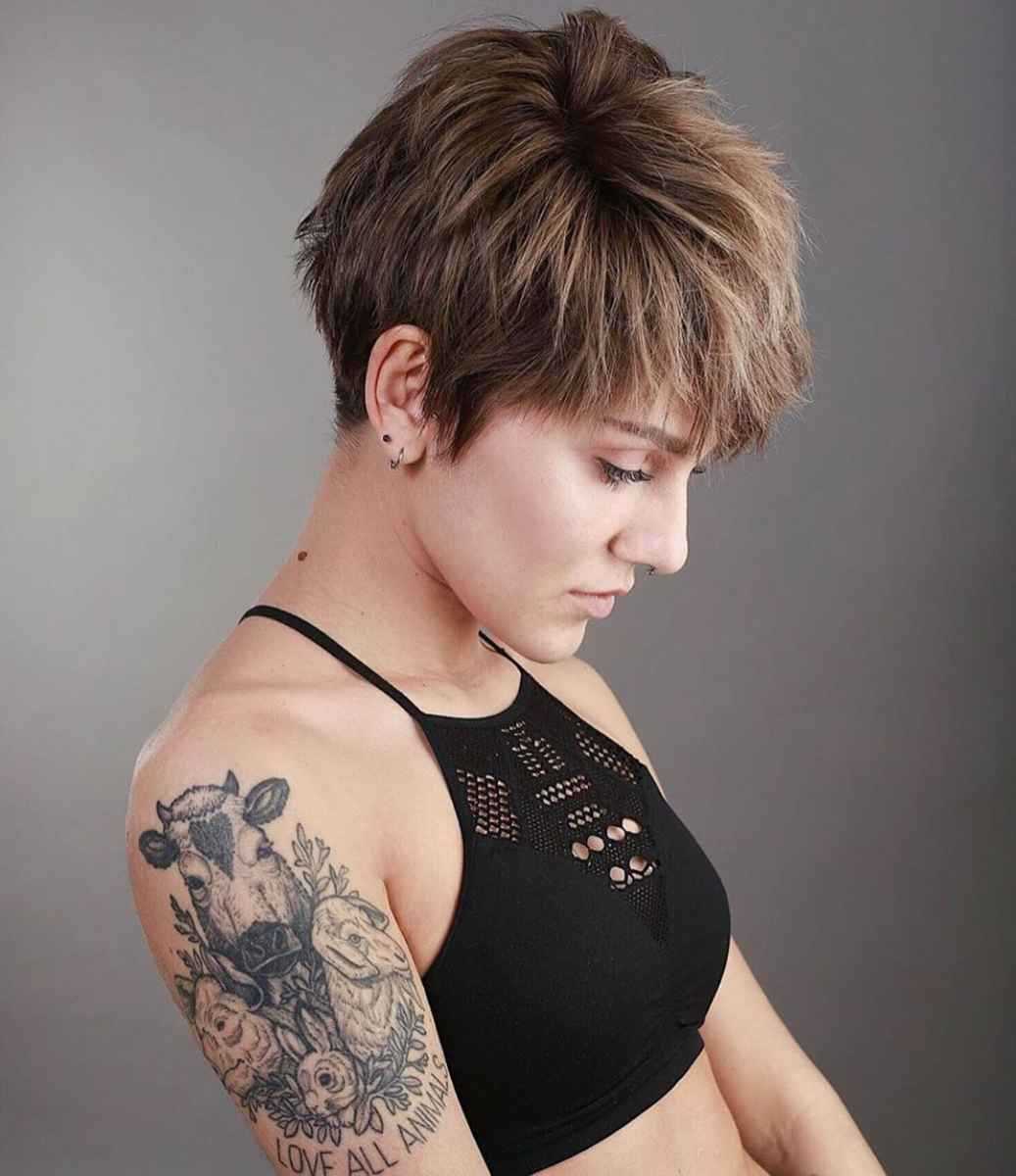 для юных особ с худощавым телосложением также подходят креативные стрижки с короткой макушкой, придавая лицу и фигуре беззащитность и легкость