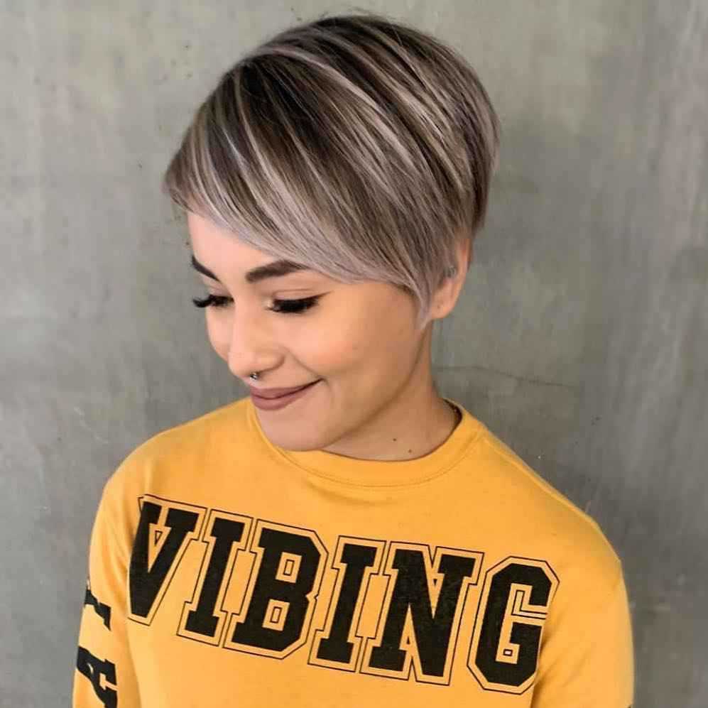 Не стоит переживать, что лук будет смотреться однообразно, так как с ней не так много вариантов причесок. Короткие стрижки с объемом на макушке будут смотреться элегантно или ярко в зависимости от аксессуаров, подобранных вами, пробора и цвета.